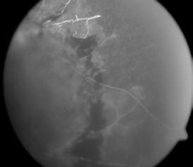 Examination often reveals telangiectatic changes in the peripheral retina. High-resolution thin-section CT evaluation of Coats’ syndrome in a child under 4 years old never shows intraocular calcification. In contrast, intraocular calcification is almost uniformly present in retinoblastomas with a thickness greater than 5 mm. There is a considerable variation in the presentation patterns and clinical course of Coats’ syndrome. Most patients are either under 4 years of age in the presentation, or over 10 years old. The majority of untreated young children develop retinal detachment. Generally, patients under 3 years old have more complications, and many of these patients eventually require enucleation of the affected eye. The choice of treatment in Coats’ syndrome depends on the ocular status and the patient’s age at the time of diagnosis. Although there is basically no chance of preserving vision in these eyes, the retina remains attached after treatment, and consequently cosmetic outcomes are better than if the eye were removed and a prosthesis implanted[4, 38] .