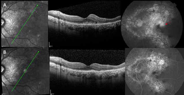 In particular, OCT evaluation shows that radiation maculopathy is characterized by edematous changes in its early stages (cystoid macular edema) and/or ischemia and atrophic changes in the macular area in more advanced stages. Currently, there are no defined guidelines for the treatment of radiation maculopathy, and a clinical trial (AL protocol) is underway to assess the role of intravitreal therapy[31]. (Figure 12)