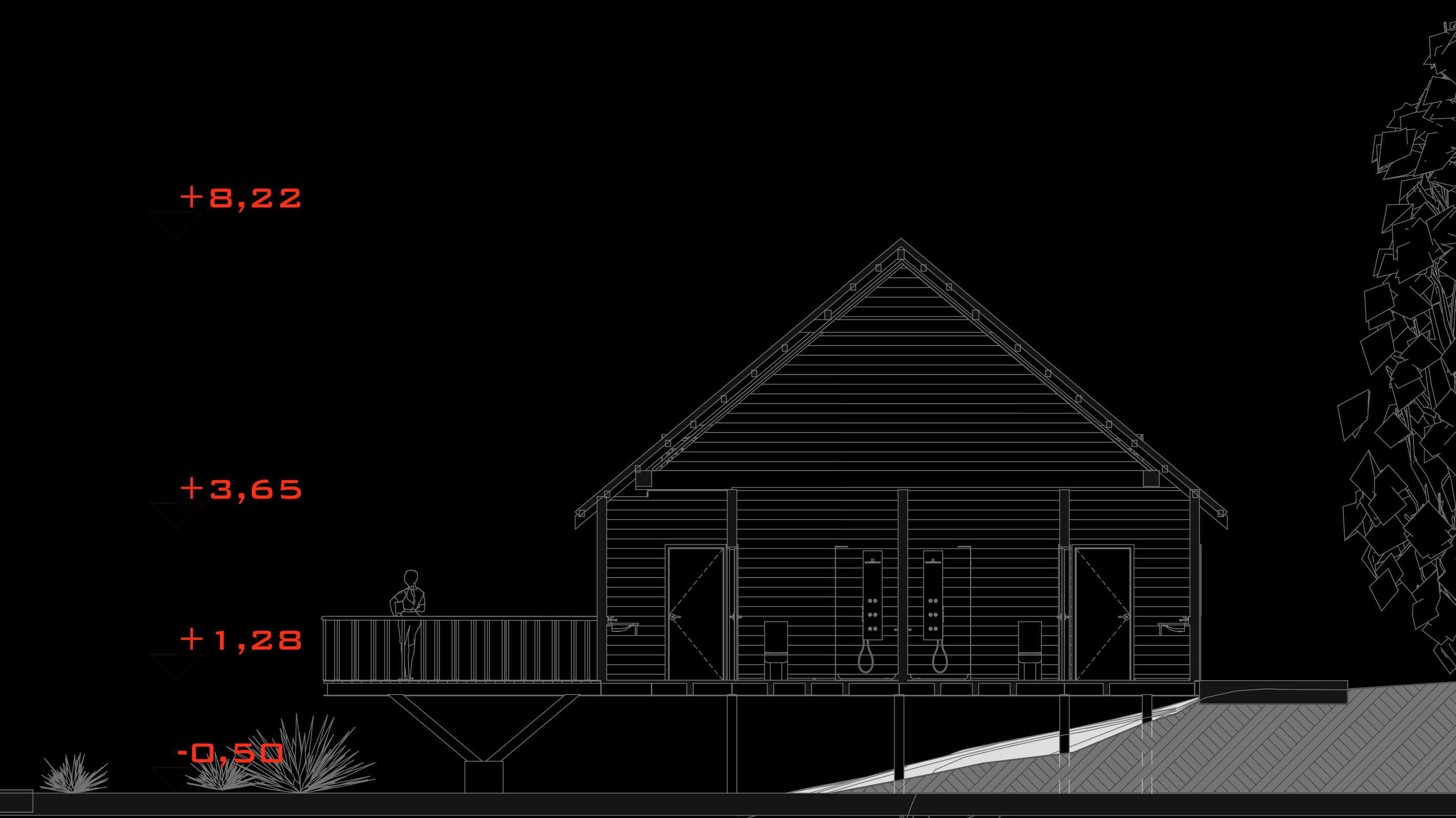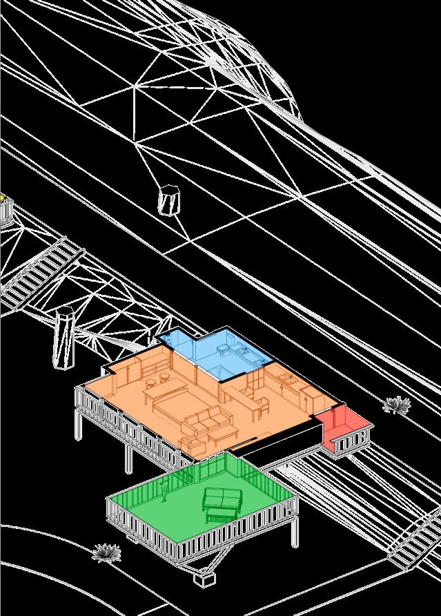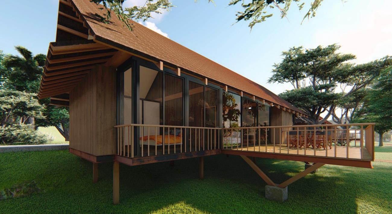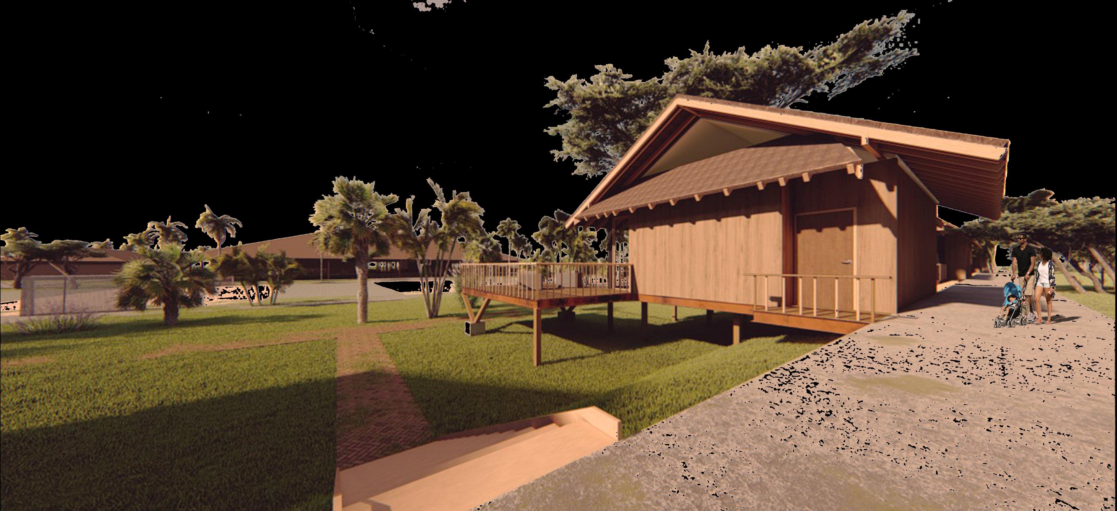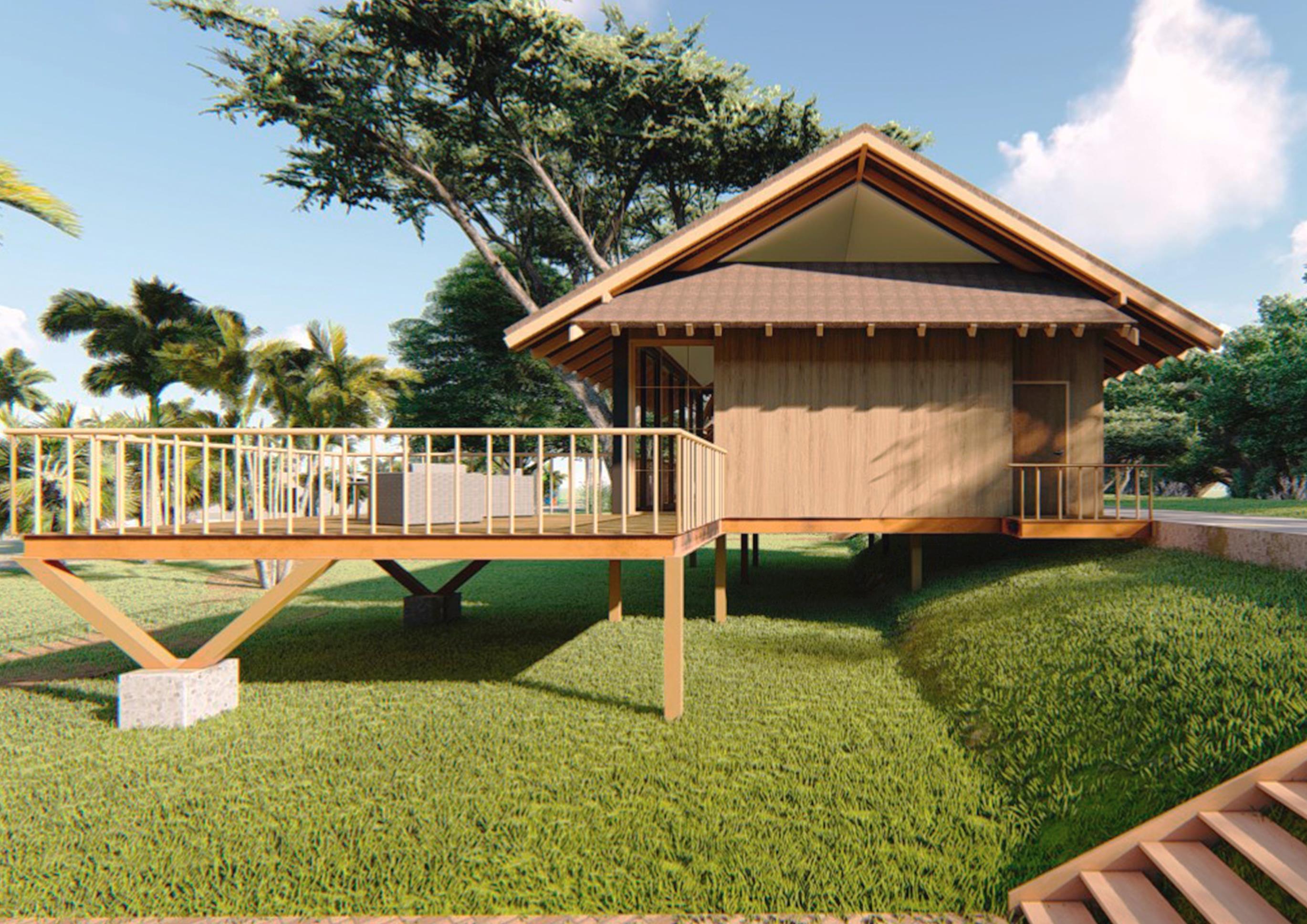 Die beiden Htten werden in ein Resort/Spa mit reizeit- und Restaurantbereichen fr die esucher integriert. Das Hauptziel ist es, zwei Arten von Htten zu haben, die anpassungsfhig, vielseitig und komfortabel sind, die aus Holz und Metall und einer etonstruktur fr die undamente gebaut werden, die klimafest sind und die den Anspruch erfllen, einen gekhlten Schutz vor den sengenden Temperaturen zu bieten, die an diesem tropischen Ort immer vorhanden sind.