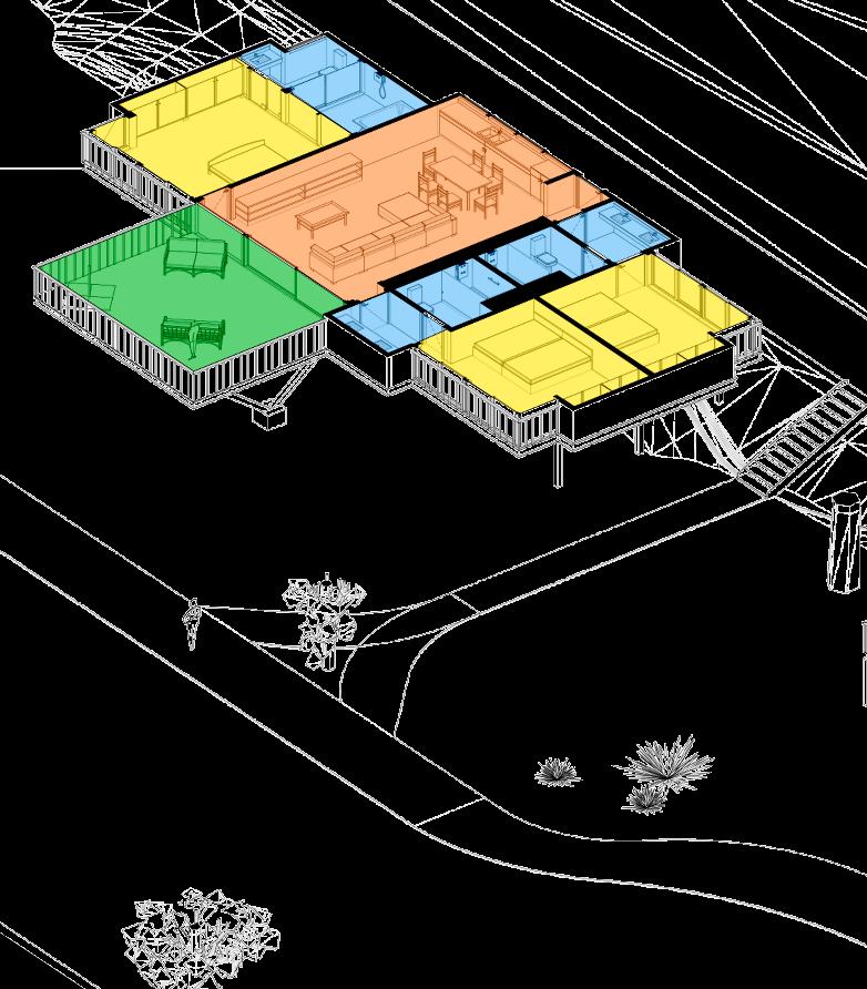 Alle Innenrume wurden so organisiert, dass sie ein gemeinsames Wohn- und Esszimmer, einen alkon und Schlafzimmer mit einer guten Trennung und Privatsphre haben, um die enutzer bequem unterzubringen und anpassungsfhig fr groe amilien, reunde oder Paare zu sein.