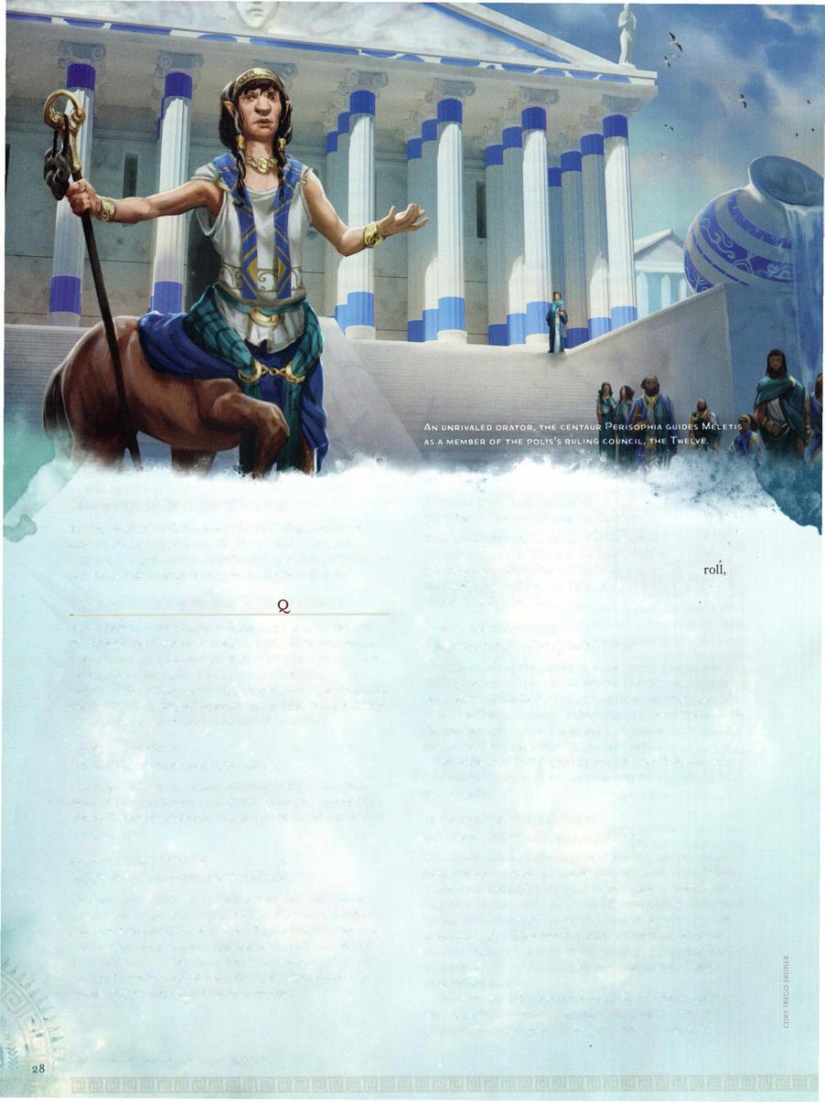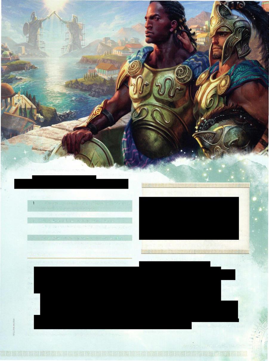 This book is your guide to Theros, its gods, its peoples and their cities (or poleis), its threats, and its tales. It also guides you through creating characters destined to be legends and adventures born of this mythic setting.