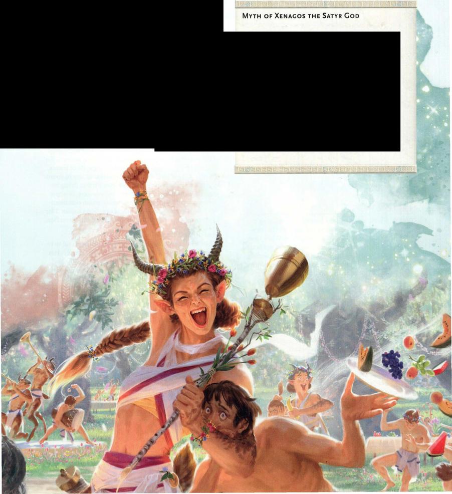 Many satyrs remember Xenagos as a satyr who lived life to the fullest and who played tricks that stirred up even the gods. Yet, he's also an example ofhow bitterness can turn a great trick nasty and how schemes that get out ofhand aren't fun for anybody. What satyrwants the responsibility ofbeing a god anyway?