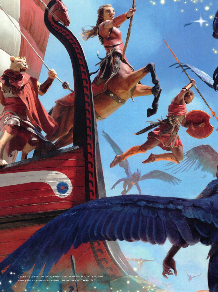 The roots of Theros lie in the myths of ancient Greece, tales dominated by gods, heroes, and monsters. This world was created as a setting for the MAGIC:THEGATHERING trading card game, explored in card sets beginning in 2013. The lands of Theros serve as an example of how to take inspiration from real-world mythology and adapt it into a world built from the ground up for fantasy adventures.