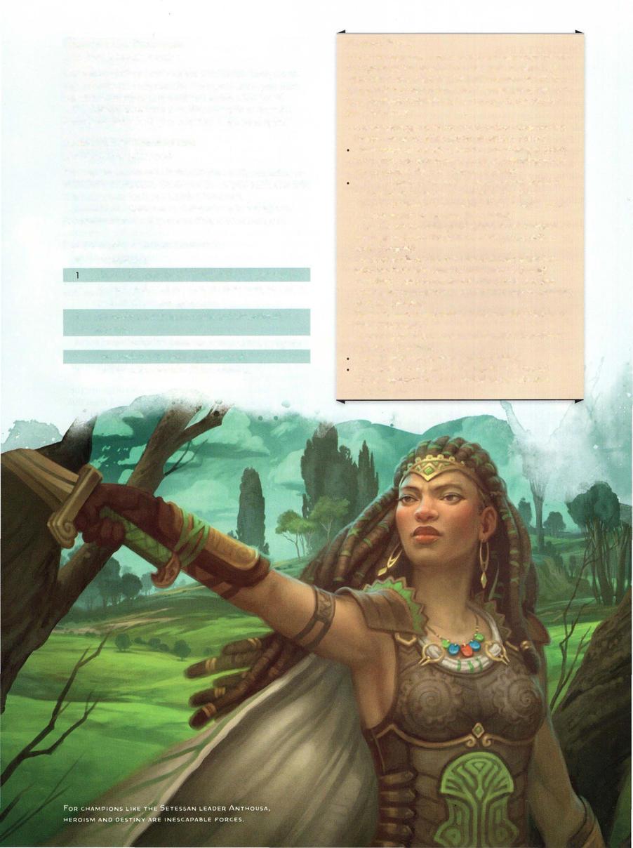 Ifyou're reading this, the answer is that you make a hero, of course. In Theros, player characters and heroes are synonymous, being rare individuals whose deeds aren't bound by fate, who willfully stray from the paths laid before them and chart their own courses.