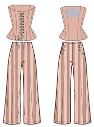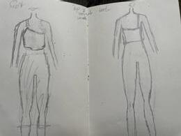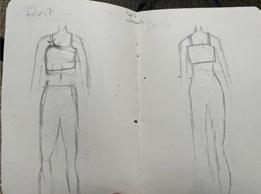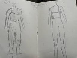 Ik heb ervoor gekozen om de blazer top te maken van de co-ord set. Hierbij zijn mijn twee details de knoopjes en de zakken op de blazer. Mijn tweede technische tekening is de minirok met de V-split. Om deze wat meer aan te passen heb ik ook hier knoopjes aan de zijkant gevoegd en een blinde zak aan de achterkant toegevoegd. Ook heb ik de split door verwerkt.