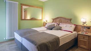 Camere: Standard, comode ed a base doppia dispongono di servizi privati, doccia, telefono, wi-fi gratuito, TV Sat. Superior, recentemente ristrutturate e con possibilità di letti aggiunti, coniugano stile moderno con la tradizione del legno antico, dotate inoltre di balcone. Family di tipo Superior ma adatte per 3/4 persone.