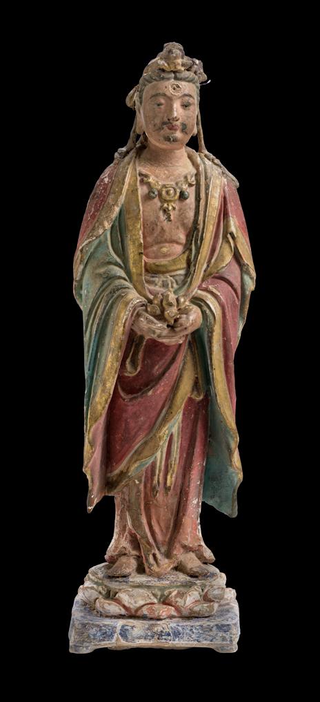 See also the Northern Song (960–1127) ceramic Avalokiteśvara in the collection of the Los Angeles County Museum of Art10 (fig. 2): the facial rendering, with moustache and beard painted beneath the nose and on the chin, is strikingly analogous to that of the present bronze statue, as is the necklace.