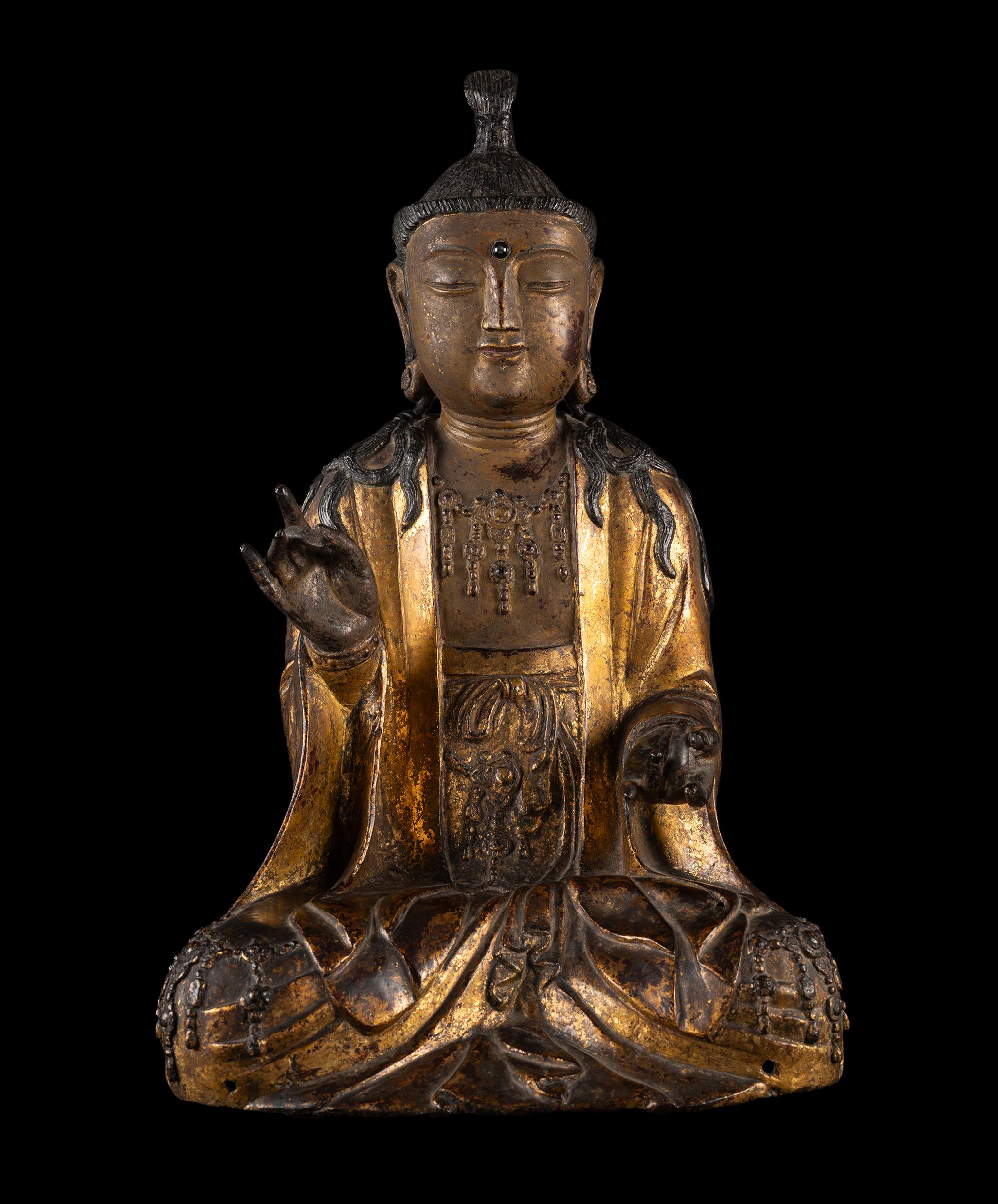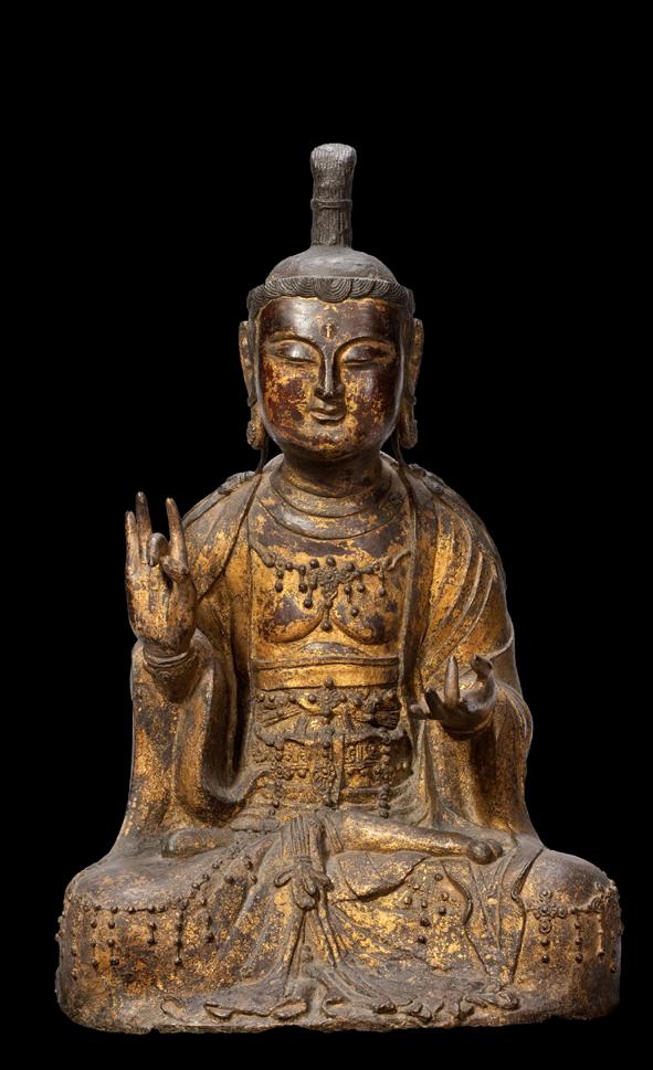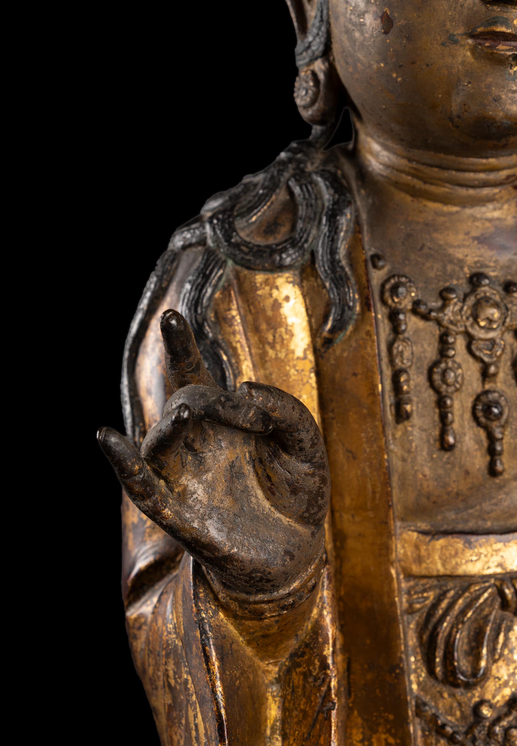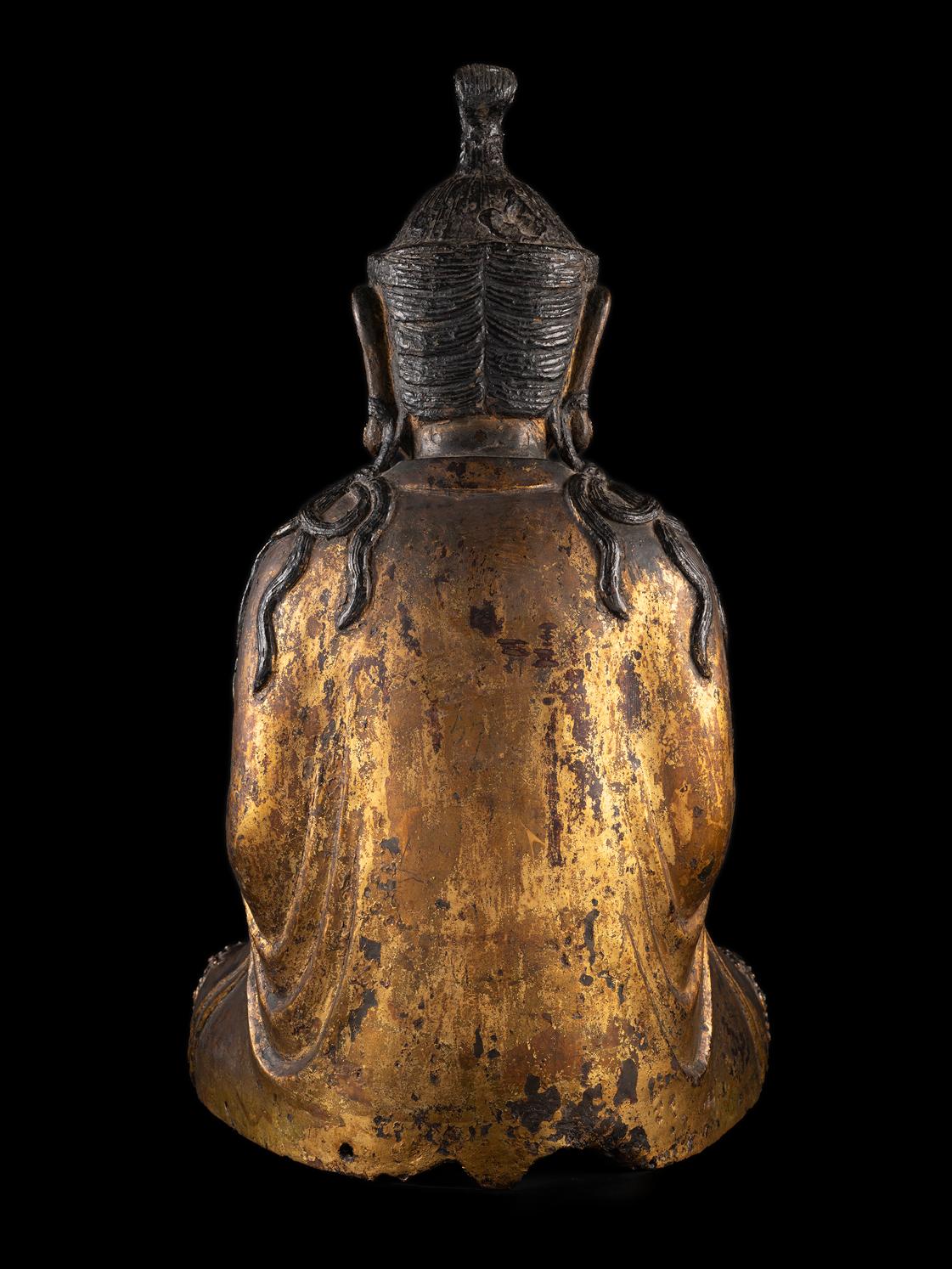 AN EXCEPTIONALLY RARE AND IMPORTANT LARGE GILT-BRONZE FIGURE OF GWANSE-EUM BOSAL,