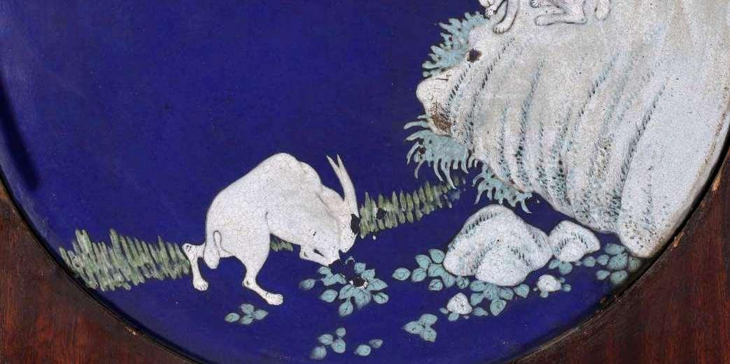 Paintedwithillustrationsonbothsides,theoutersidedepictsadaytimesceneinaZenana (orharem),withfiguresseatedoncarpetsandelegantcushionssurroundedbyattendants, dancers,andmusicians;theinnersidefeaturesthemotifofgul-ebolbol,thenightingaleand therose,oneofthefavorediconographicthemesinPersianartduringtheSafavidandQajar periods.
