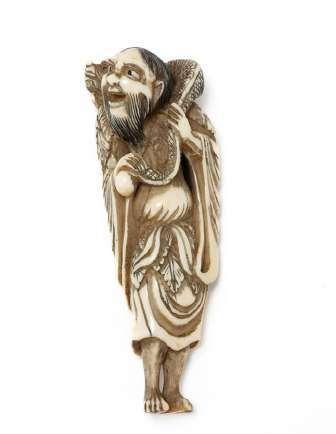Intagliatoaformadiunsaggioconunbastoneeuncerbiatto.Pesog184.