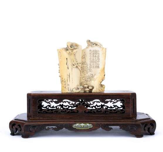 Carvedwithamaleandafemalefigure.Weight:181g.Itrests onanivorybase.