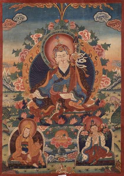 Standingonalotusflowerandsurroundedbyabeautiful,raredoublemandorla aureole,hisrighthandisinthegestureofdispellingfear,asifinvitingoneto surrendertotheMaster’steaching.