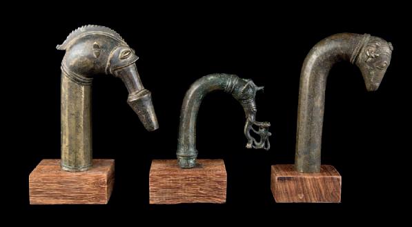 THREE BRONZE DAGGER HANDLES, India, Karnataka state, 19th century