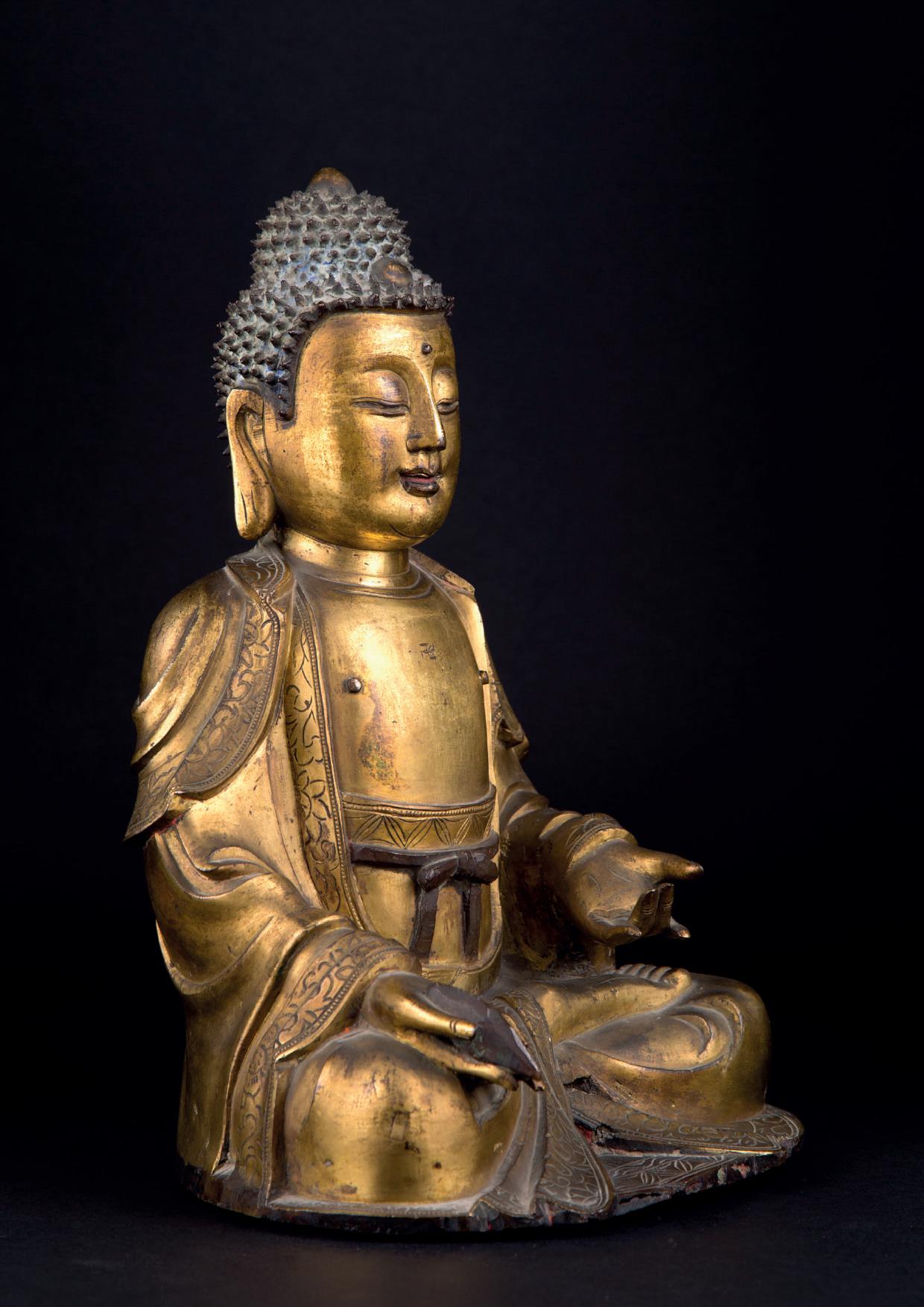 A GILT BRONZE SEATED BUDDHA, China, Qing Dynasty (1644-1911)