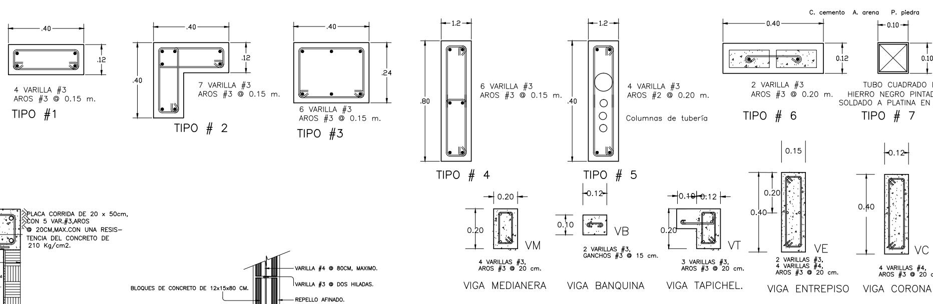 2,6 ml Altura 0,12 Cantidad Columas base 0,40 10 Altura 0,12 Cantidad Columas base 0,40 7 Altura 0,24 Cantidad Columas base 0,40 1 Altura 0,80 Cantidad Columas base 0,12 3 Altura 0,40 Cantidad Columas base 0,12 1 Altura 0,12 Cantidad Columas base 0,40 10 Altura 0,10 Cantidad Columas base 0,10 24 Tubo Cuadrado Hierro Negro Pintdo Aros # 3 @ 0,15 m Columa Tipo # 5 Aros # 3 @ 0,15 m Columa Tipo # 6 Aros # 3 @ 0,20 m Columa Tipo # 3 Aros # 3 @ 0,15 m Columa Tipo # 4 Aros # 3 @ 0,15 m Columa Tipo # 1 Aros # 3 @ 0,15 m Columa Tipo # 2 COLUMNAS Calculo de Volumen de Concreto Longitud de Columna 1.-3.-6 4,37 0,486 0,972 105 1.-2,5.-5 5,10 0,472 0,944 140 1.-2.-4 6,12 0,456 0,912 175 1.-1,5-.3 7,65 0,427 0,854 210 1.-1.-2 10,2 0,378 0,756 245
