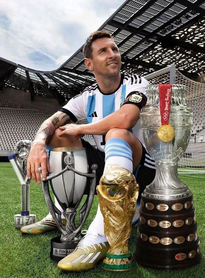 Con más de 1,000 goles y un sinfín de títulos, Messi ha ganado 8 Balones de Oro, 2 premios The Best FIFA, 6 Botas de Oro y múltiples trofeos internacionales. Ha conquistado más de 40 títulos, incluidos 4 Champions League, 10 Ligas de España y 1 Copa del Mundo con Argentina en 2022, además de dos C América ,la Finalissima y el corázon de un sinfin de personas.