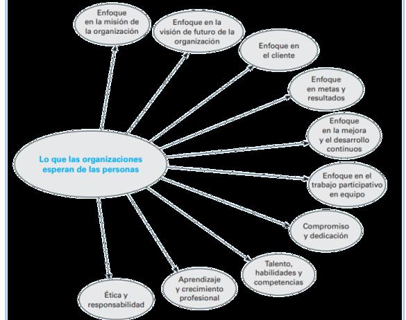 ¿Qué esperan las personas de la organización? Las personas sienten el impulso de ingresar a una organización para aplicar sus talentos y competencias, trabajar, correr riesgos y permanecer en ella en función de algunas expectativas, que no son las mismas para todos, pero presentan ciertas semejanzas. Lo que las organizaciones esperan de las personas en el trabajo en las organizaciones depende fundamentalmente de las personas. Aun cuando las organizaciones posean recursos