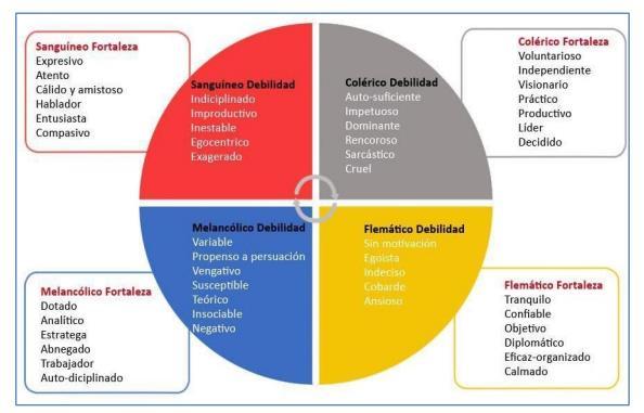 Los tipos de comunicaciones que deberá adoptar dependiendo la situación para abordar una buena decisión. un factor determinante a la hora de tomar buenas decisiones es saber cómo controlar y cómo debe actuar antes diferentes circunstancias, como también el carácter de las personas con la que está tratando. Esto también se asocia a los temperamentos que poseen las personas. El temperamento es la estructura básica sobre la cual construimos nuestra personalidad y es aquella peculiaridad que predomina en la forma en la que está constituido nuestro humor y nuestra motivación. Esta estructura viene dada desde nuestra configuración genética, que por lo tanto tiene un componente de nuestra personalidad que es heredado. Esto es importante de resaltar porque significa que nuestro tipo de temperamento no lo podemos cambiar, permanece casi que igual siempre, independiente de las situaciones a las que nos veamos expuestas en nuestras vidas, así como la manera en la que vivimos nuestras emociones. Existen 4 tipos de temperamento que tenemos las personas según la teoría de los temperamentos de Galeno: