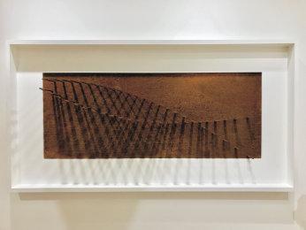WallmountedCORTENsculptureOfferedinawhiteframe overallsize1490X780mm