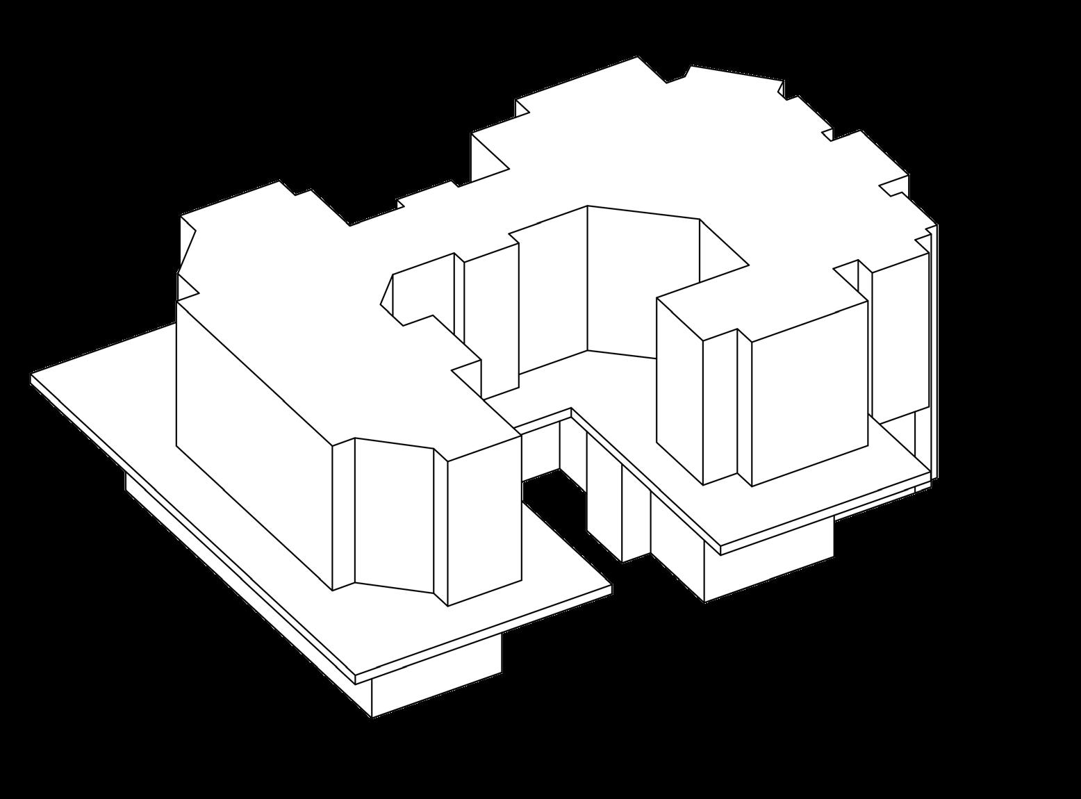 Interior massing creating which connects to
