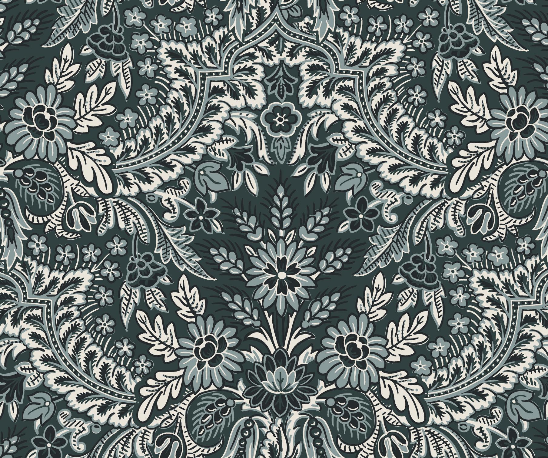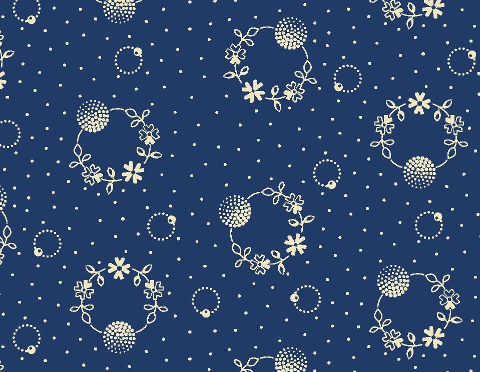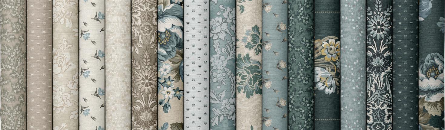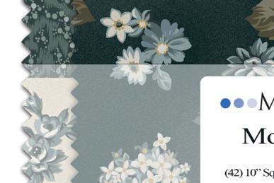 The debut collection from Kristina Trogdon of Quilt Verve.com blends vintage, bohemian florals, medallions, moonlight tones, varying scales large, medium, and small florals, textural dobby print, blenders for gradient design options. Kristina’s softly washed palette of navy, muted blues and neutrals gives an elegant boho effect to quilts, clothing, crafts and décor.