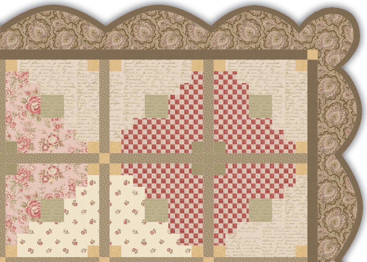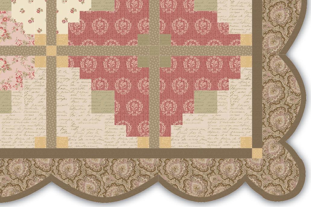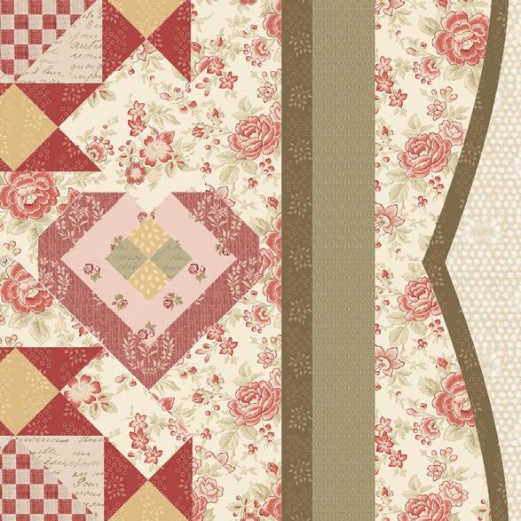 Dawn Heese found her design inspiration at a flea market in France, “...where I discovered a small bundle of letters written by soldiers during the war. I knew I had to bring their stories to life through fabric. Digging into my collection of antique French textiles, I found a paisley print with heart-shaped motifs that seemed destined for this project.”