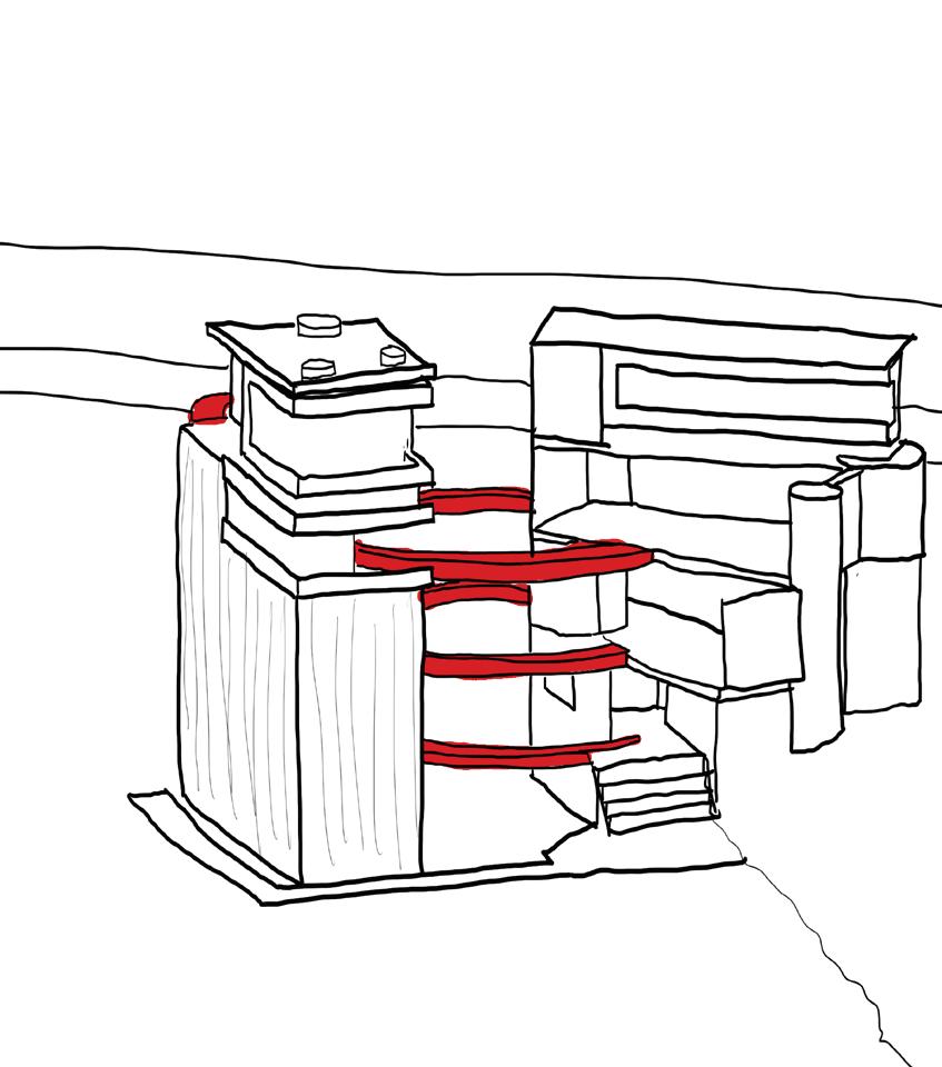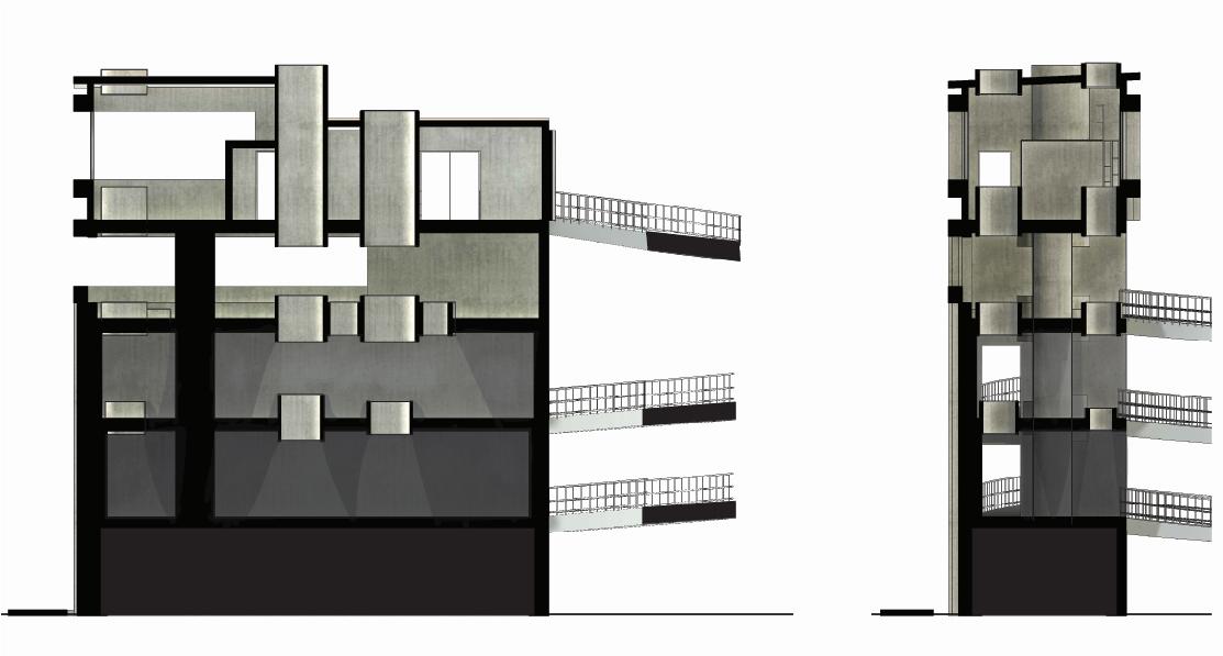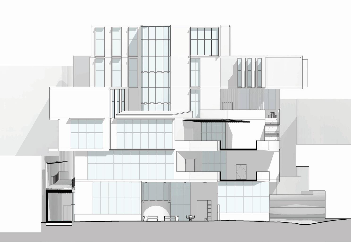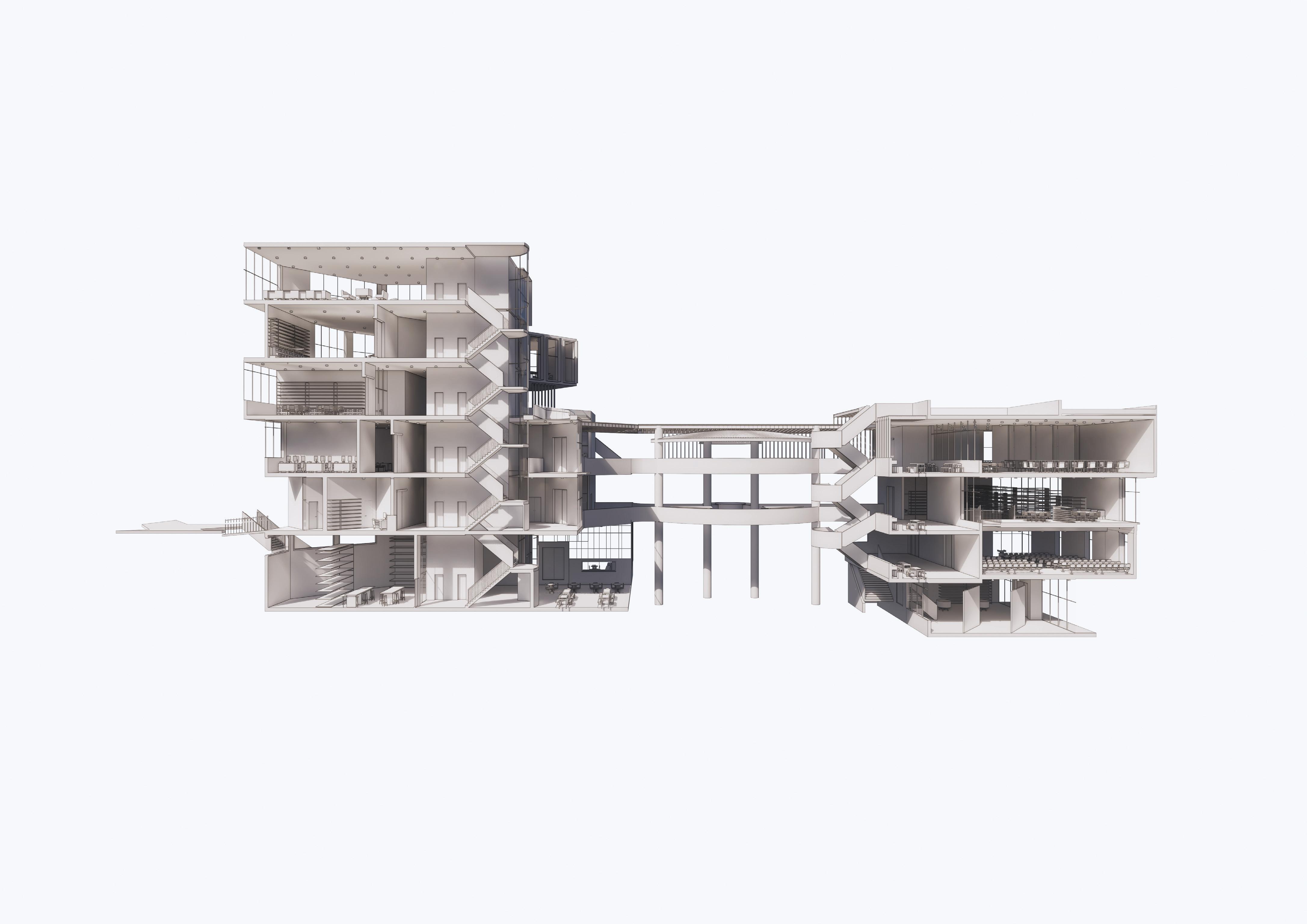 A new building for the School of Architecture was proposed in the Brisbane CBD. The design process for the new building occurred over three weeks, hence was supported and accelerated through group work and three allocated practises to use as inspiration. Once the basic designs was established, groups further developed through detailing analysis.
