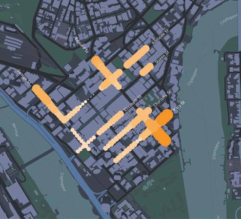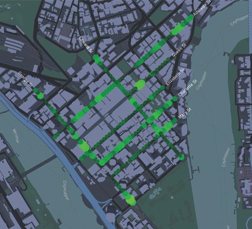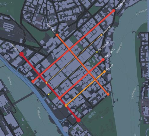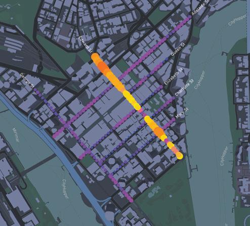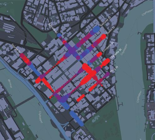 Data was then used to conducted thorough site analysis, using the criteria to define the best street through the CBD to run. This result was also tested by a physical run through the top three contending streets.
