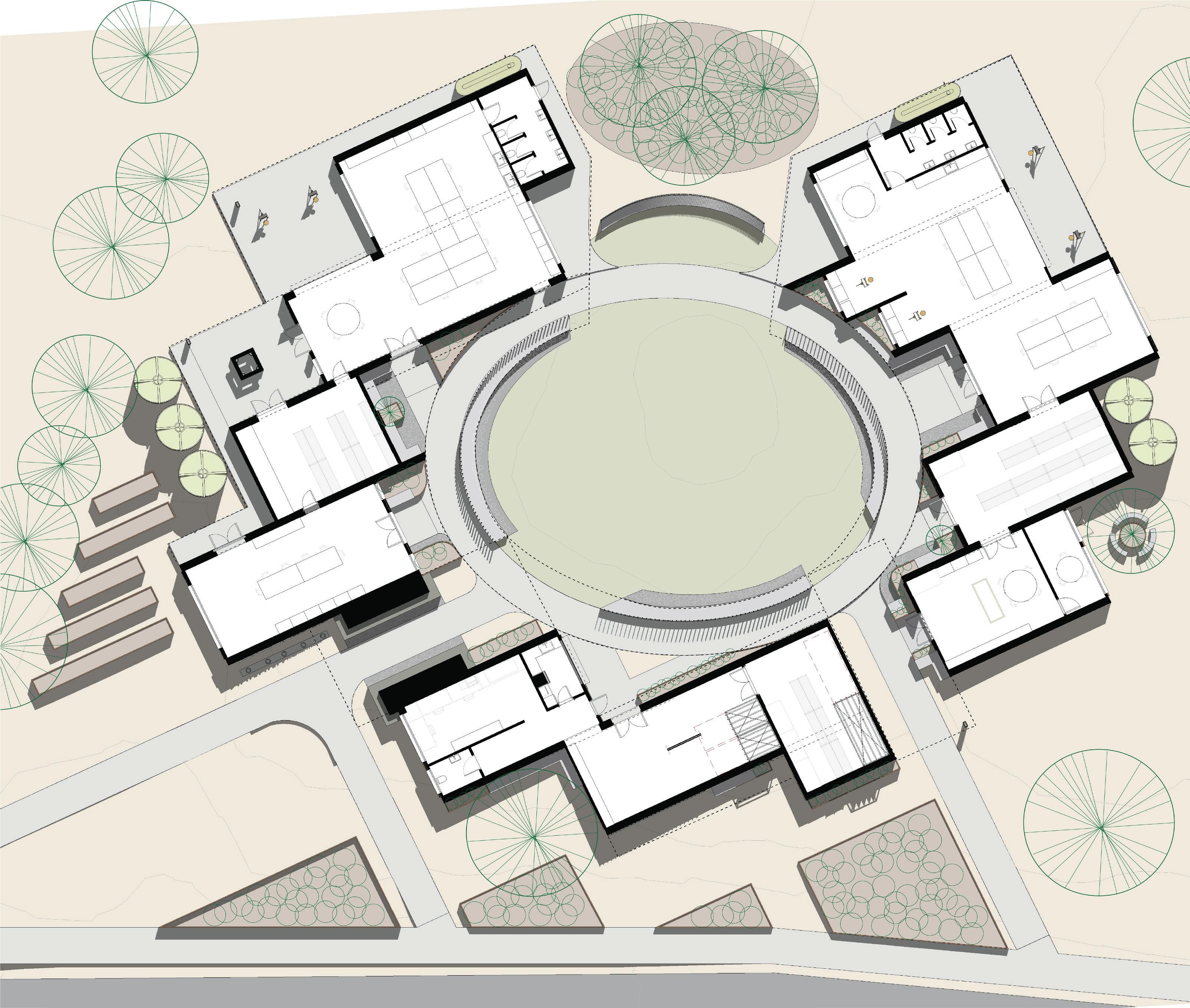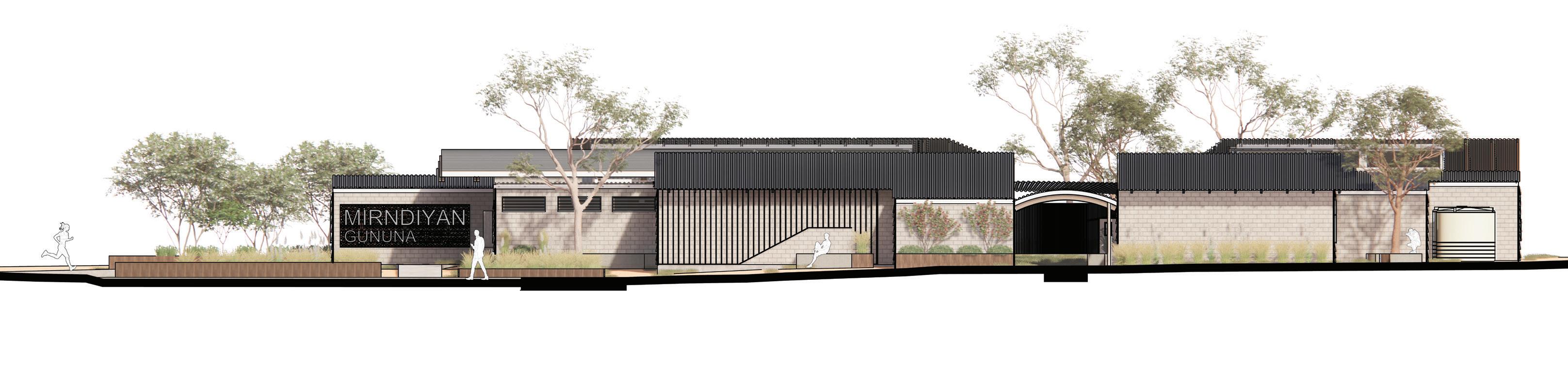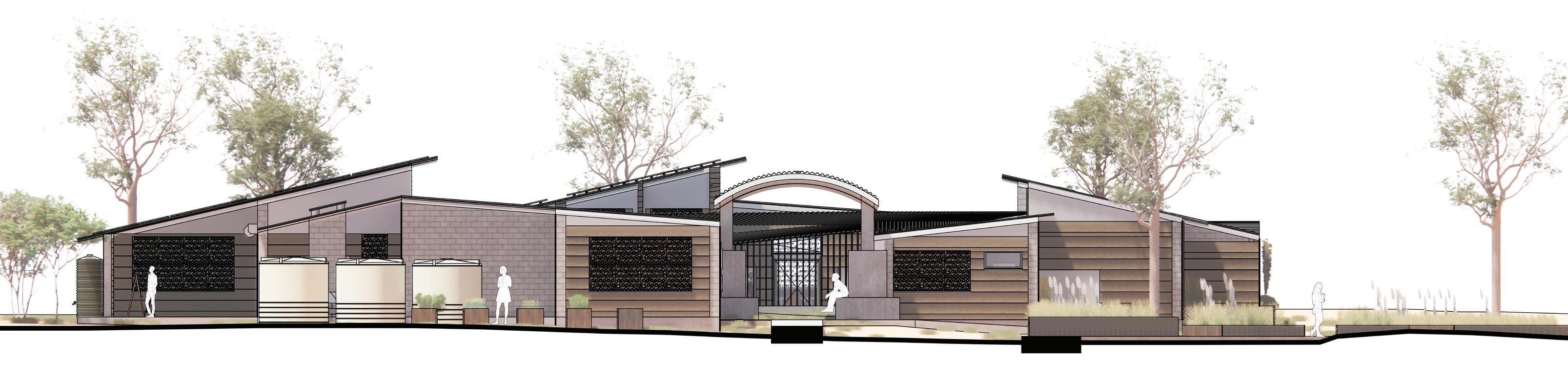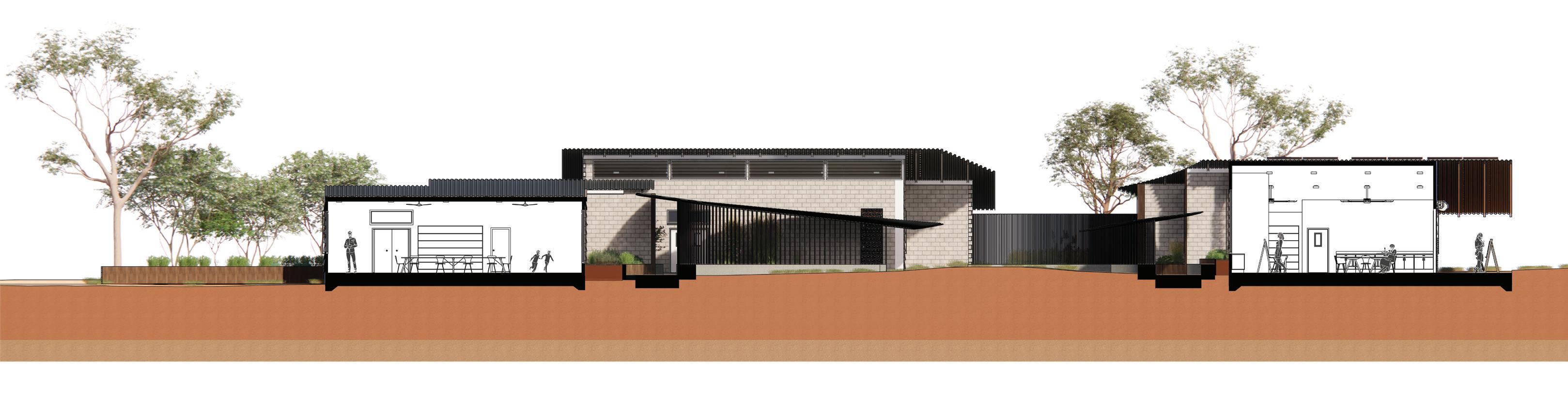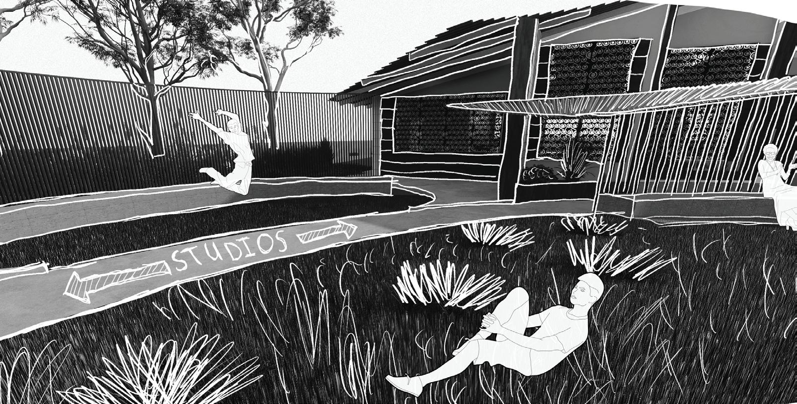 The goal of the proposed new design was to facilitate connection to Country, allowing the artists to have a physical connection to what they are painting, while also surrounding a central gathering space to be used by the community at large and encourage future engagement with the arts. This connection to the surrounding environment and the internal gathering space, in conjunction with an angled grid of tiered privacy, creates a space to facilitate production of art and connection to culture. Careful consideration into cultural aspects and gender separation has been implemented into the layout and design.