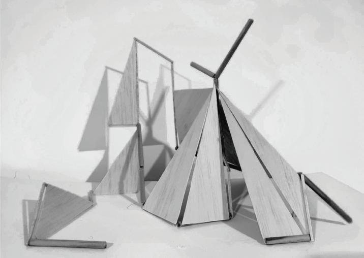 The design process centred around analysing the existing physical site features and deriving the basic structure for an eco-café through the process of abstraction. A series of abstraction studies were conducted, taking existing elements to produce the design. Each stage of abstraction was first drawn and 3D modelled before being constructed as a basic physical model.