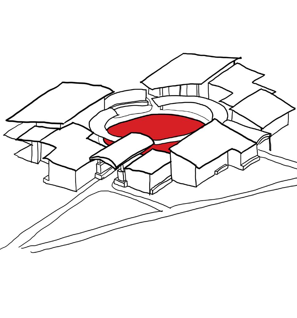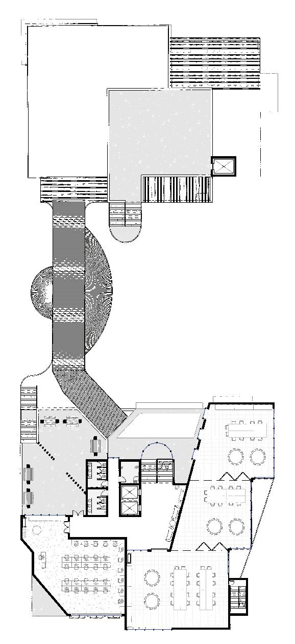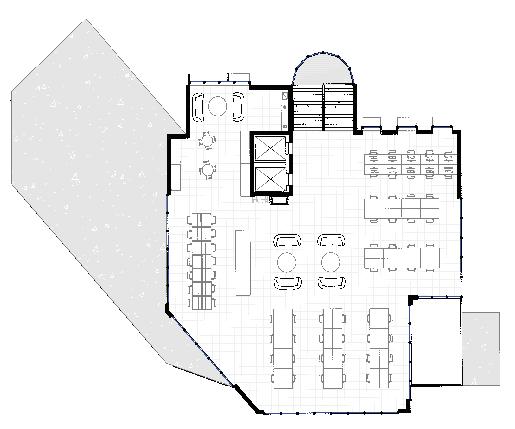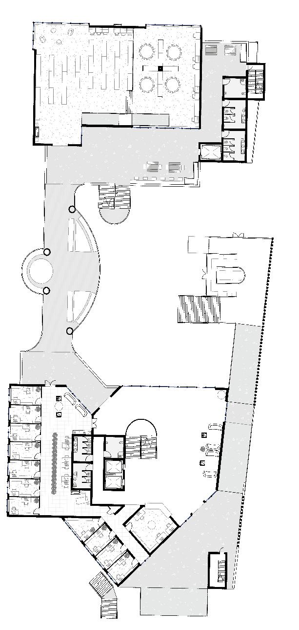 The courtyard acts as the void between the two major structures, shaped by the connecting bridge walkway. Central circulation around the courtyard encourages connection between students as well as the faculty. This ensures visual connection between horizontal and ver tical circulation at all times to allow a constant understanding of the building and its current users for students.