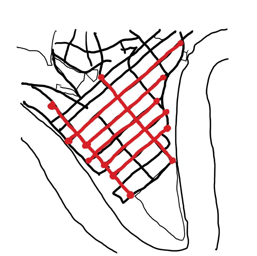 Machine learning was used to analyse and collate data of the streets in question, including solar exposure, number of street crossings and proximity to cafes. This data was then visualised on a map through the use of Grasshopper in Rhino. Similarly, screenshots from Google Street View were gathered and processed through a machine learning algorithm in Grasshopper. This allowed percentage of greenery, average footpath width and number of pedestrians. This data could then be added to the visualisation.