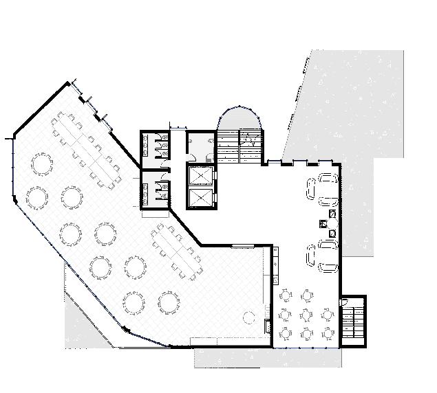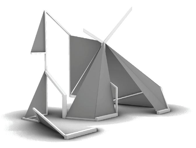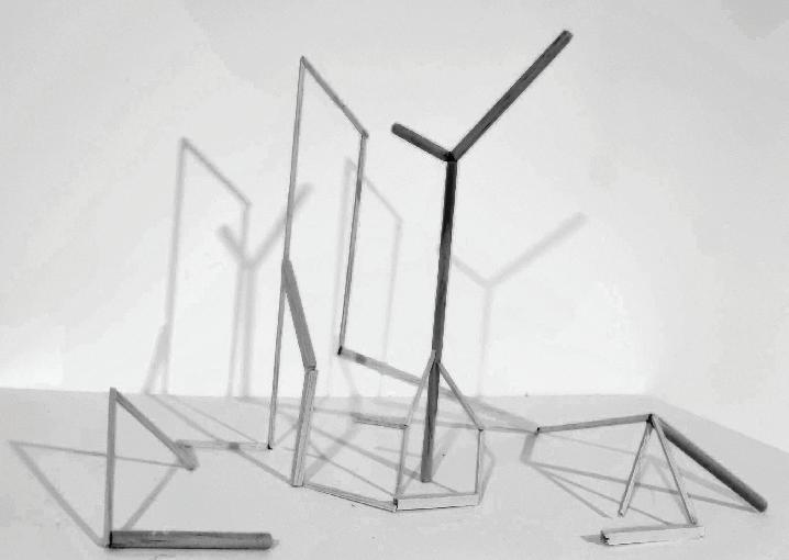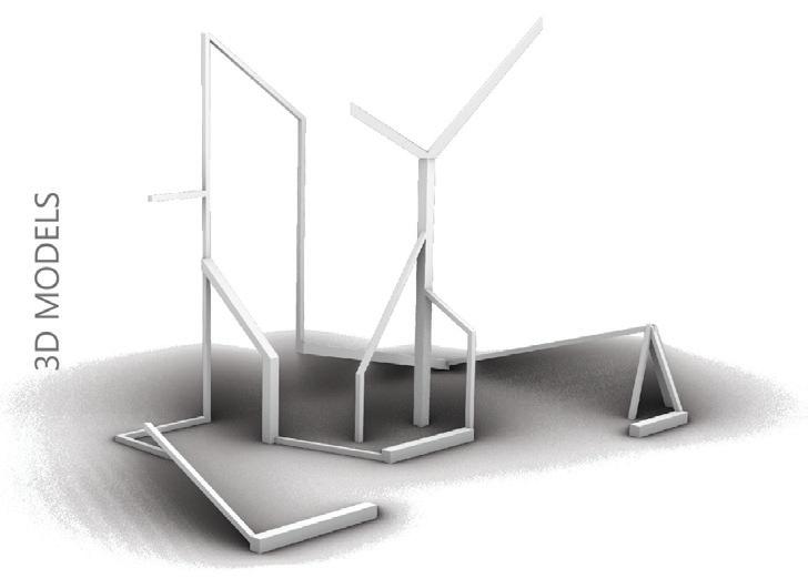 The first abstraction series aimed to represent the existing site as a purely linear series of joined lines, varying in weight to represent physical elements such as surrounding buildings, fences and vegetation. This linear product was then further abstracted upon, adding surfaces to represent the shadows that are cast by the physical site elements. The final product from the series of abstractions was used to derive the eco-café. The challenge was to find volumes in the structure to use as spaces in the final design, with only minor changes to the form being allowed.