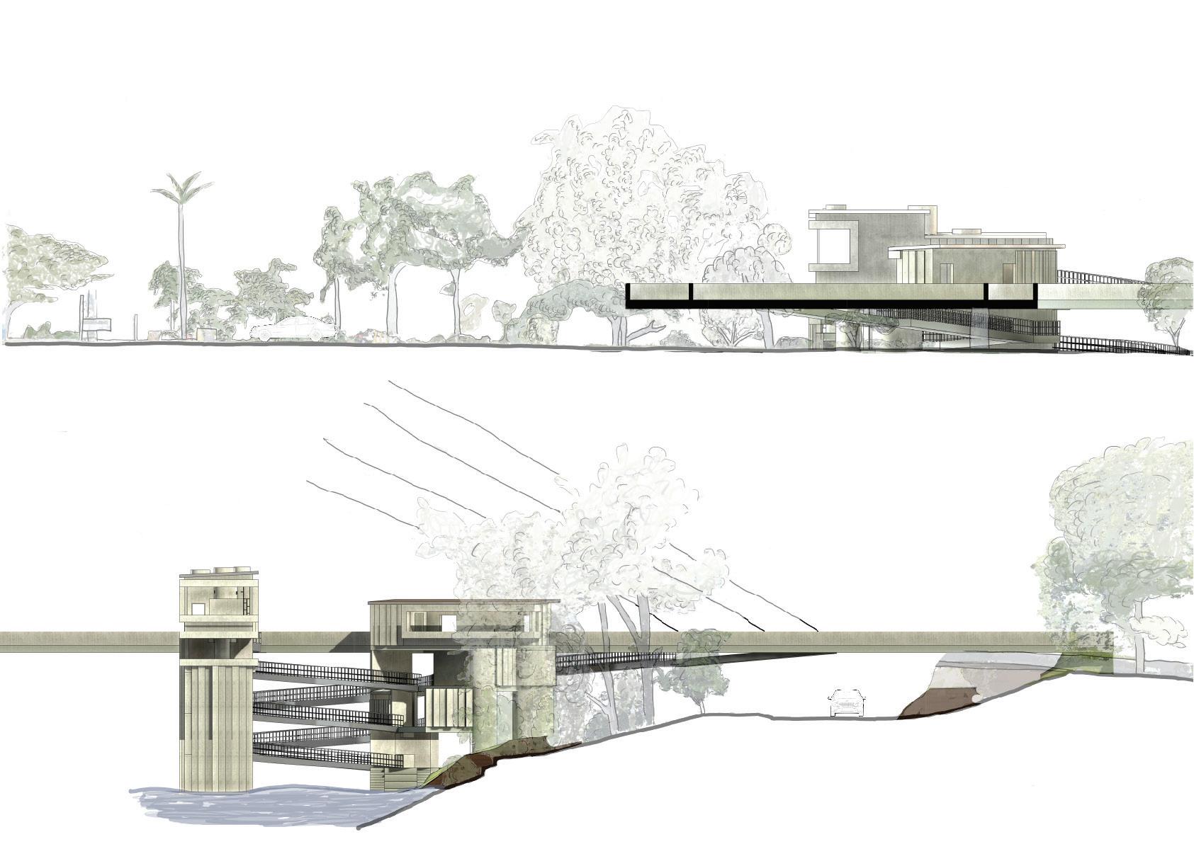 The aim of the flood resilience gallery was to create a space on the river at the University of Queensland that educates about the river, its history and the future importance that it has to the city of Brisbane. To achieve this, two goals were denoted during the design phases: to use the architecture to allow the river itself to communicate its story and to connect the isolate walkway across the bridge to the network of nodes that are planned to be constructed along the river.