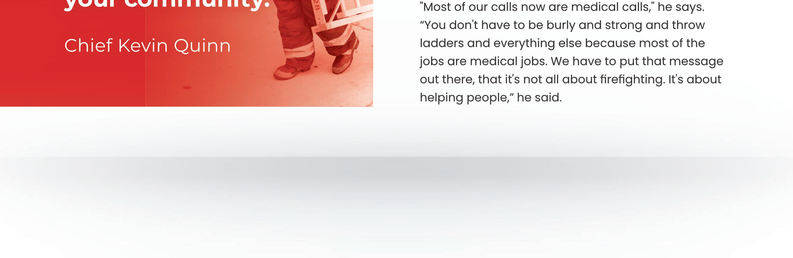 Wemusttellabroaderstoryaboutwhatitmeanstobeafirefighter. Modernfirefightingisnotsolelyaboutbrutestrength;manyofour callsaremedical,andourrolesincreasinglyfocusonprevention.To buildastrongfuture,weneedtoactivelyrecruitamorediverseand representativeforce,whichincludeswomen,bilingualresidents,and youngpeoplefromallwalksoflife.