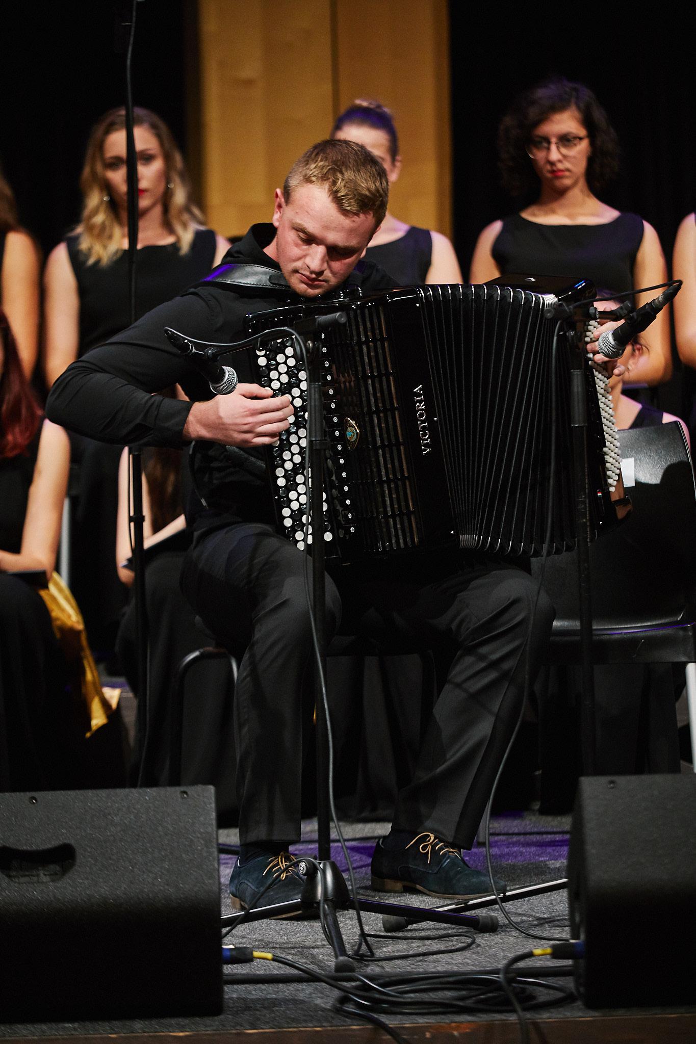 puta da zajedno muziciraju dvije harmonike i dva glasa. Osvojili smo 1. nagradu i 1. mjesto na 8. hrvatskom natjecanju za harmoniku u Daruvaru i 1. nagradu i 2. mjesto na međunarodnom natjecanju „Eufonija“ u Novom Sadu. Sudjelovao sam u projektu izvedbe nove suvremene skladbe Sande Majurec. Tada su prvi put surađivale sve akademije u Hrvatskoj. Nastupio sam u zanimljivom sastavu od šest instrume nata: flauta, bisernica, klarinet, harmonika, violončelo i kontra bas. Veliko zadovoljstvo mi je i sviranje u orkestru. Tijekom 1. i 2. godine studija imali smo nekoliko projekata s orkestrom. Izdvojio bih projekt „Koncert solista s orkestrom“ gdje sam nastupio kao solist uz pratnju orkestra, te nastup orkestra na Danima Muzičke akademije gdje smo jednu skladbu izvodili sa zborom, i autorsku večer tadašnjeg dekana Bashkima Shehua gdje smo izvodili njegovu kompoziciju. Spomenuo bih i nastup na HRT-u u emisiji „Etno fletno“ i „Volim Istru“. Vrlo je značajan i nastup na Danu Istarske županije u koncertnoj dvorani u Pazinu. Ove akademske godine prisustvovao sam Svjetskom trofeju harmon ike gdje sam sudjelovao u tri kat egorije: Masters u kojoj se izvodi klasična glazba, Trofej Galliano u kojoj se izvodi skladba Richarda Galliana, i kategorija za kom pozitore gdje sam sudjelovao s dvije svoje skladbe (Corona Virus i Overthinking) i ostvario zapažen rezultat.