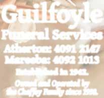 TRADING HOURS: Monday - Friday 8am-5pm Saturday 8am-12pm www.facebook.com/tablelandfertilizer MAREEBA: 26 Reynolds Street - Phone 4092 2711 | ATHERTON: 40 Eclipse Drive - Phone 4091 3100 BULK MOLASSES AVAILABLE! Bring us your empty drum and we will fill it up. As little or as big as you would like. www.theexpressnewspaper.com.au EXPRESS The Delivering news across our region WEDNESDAY 15 FEBRUARY, 2023 Historic train steams ahead Page 6 Atherton secures home semi Page 35 Quest to market shire begins Page 4 A DAM GOOD SIGHT! www.communityfunerals.com.au For a loving farewell, not an expensive one MAREEBA 180 Walsh St 4092 4774 • ATHERTON 112 Main St 4091 1199 WHERE ONLY THE BEST IS GOOD ENOUGH Community Spirit