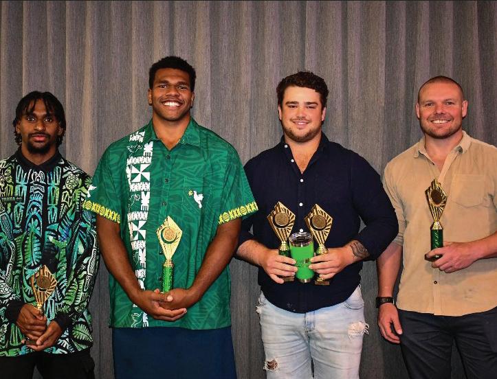 nights Gladiators celebrate stellar season A GRADE Player of the Year – Caleb Dally Most Improved – Murphy Morris Rookie of the Year – Gabriel Tunimakbu Come Back Player of the Year – Ricky Shave RESERVE GRADE Player of the Year and Best Forward – Manaia Tunguz-Te Ture Most Improved – Jeoy Baupua Best Back – Seone Patolo Coaches award – Juston Dodd UNDER 18 Player of the Year – Makeal Newbury Utility of the Year – Tristan Lopez Forward of the Year – Tyrone Williams Most Dependable – Reece Boyle Back of the Year – Noah Blooranta Player’s Player Award – Saxon Vizard Life Member John Arcidiacono with President Darrin Hastie. Reserve Grade players Joey Baupua, Manaia Tunguz-Teture and Justin Dodd. Gladiator of the year Caleb Dally