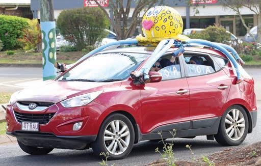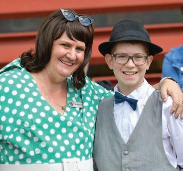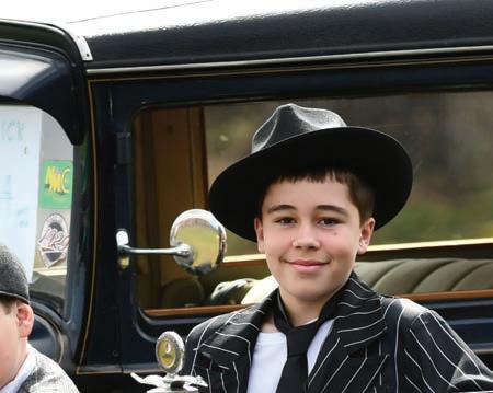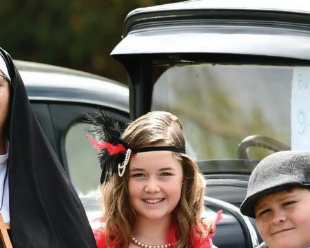 Mrs McFarlane, Mia, Johnny and Hunter (pictured) dressed up for Centenary Dress Up Day event that saw students and teachers line Alice Street to see 100 years of classic cars roll past. ▪ PHOTOS PAGE 10