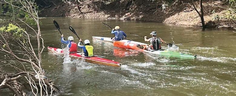 “Whilst enjoying the greatest river volumes in our 14-year race history, paddlers had to slalom around and under many obstacles, an exhilarating experience. Those who swam the least produced personal record times.”