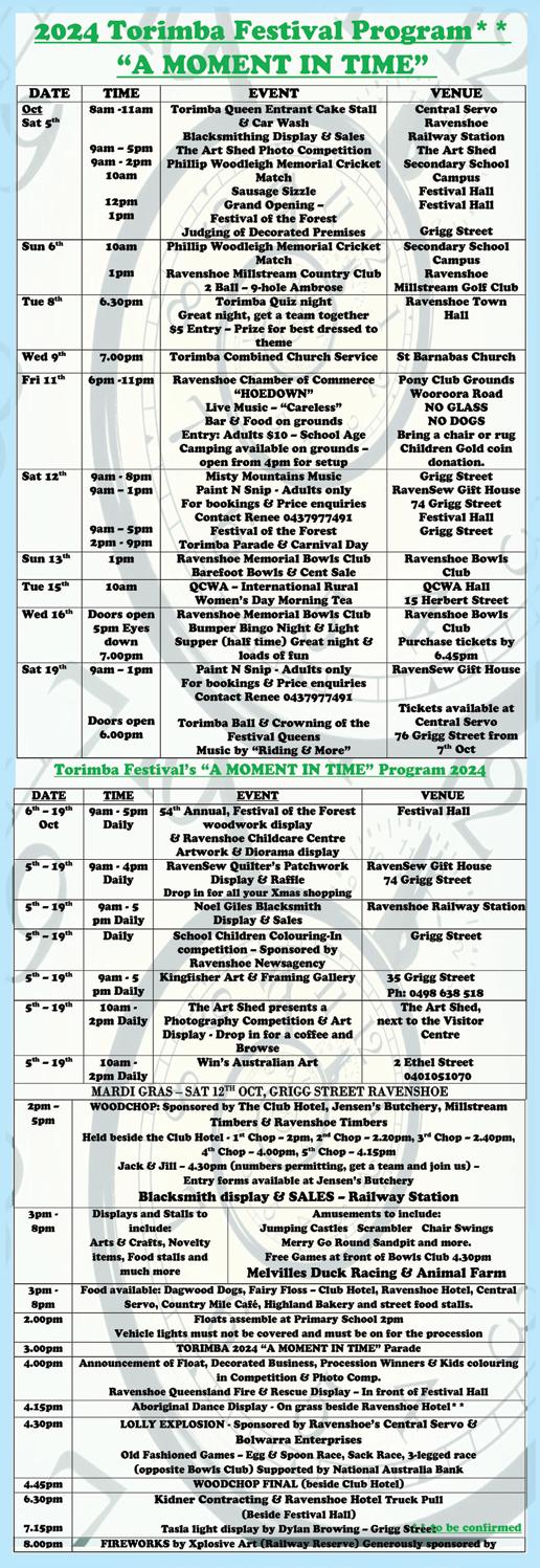 Cold drinks and hot food will be served by the Tolga Lions Club.