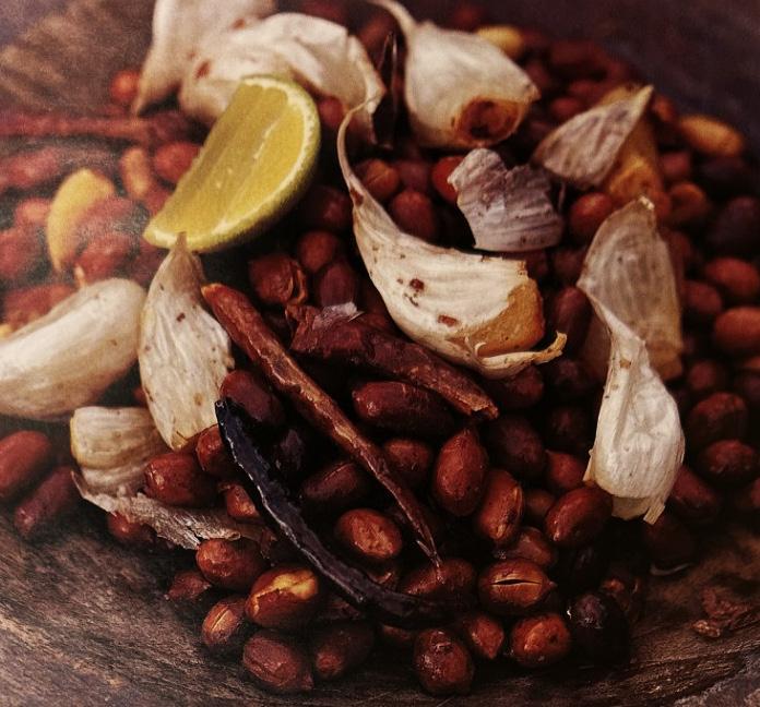 Peanuts have been a classic bar food snack since the mid-1800s. Peanuts are naturally high in fat content, making them perfect for snacking on while consuming a delicious alcoholic beverage. This Chile Garlic Peanut recipe found in the UW-Stout archives was perfect to match the location and concept for the Velvet Curtain cocktail bar and restaurant. With pops of hot chile and zings of lime, this recipe offers a lavish kick to the menu of The Velvet Curtain, elevating the classy and sparkling setting of the interior.