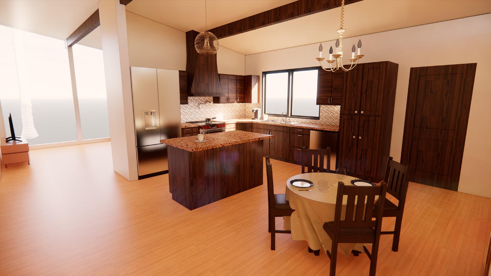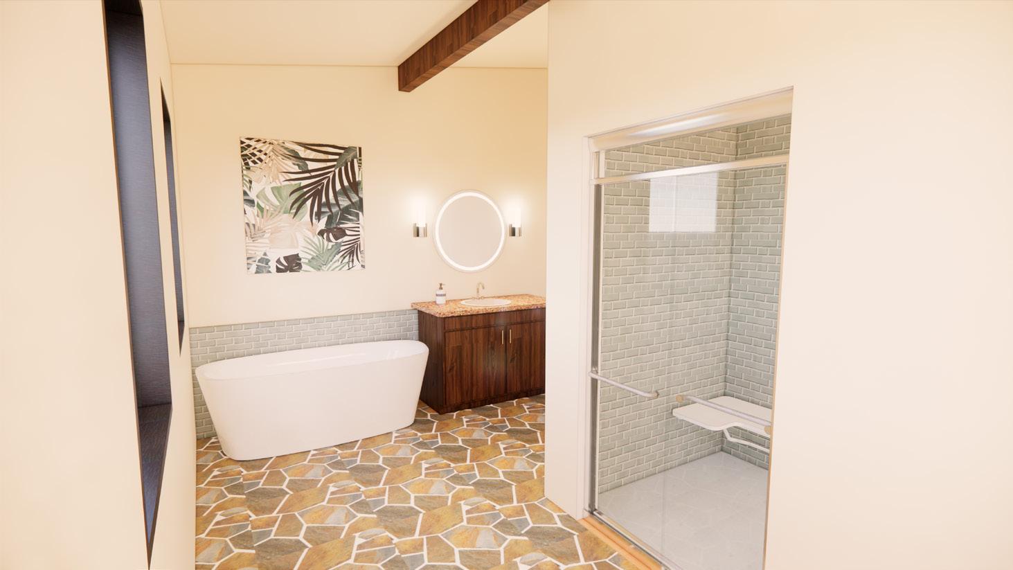 This home offers a serene, tranquil environment for the mother and daughter that live here. The interior replicates the desert landscape of the Coachella Valley by using rustic oranges and earthy textures inspired by the Boho style. This space also provides safety and reassurance through a universal and accessibility-focused design.