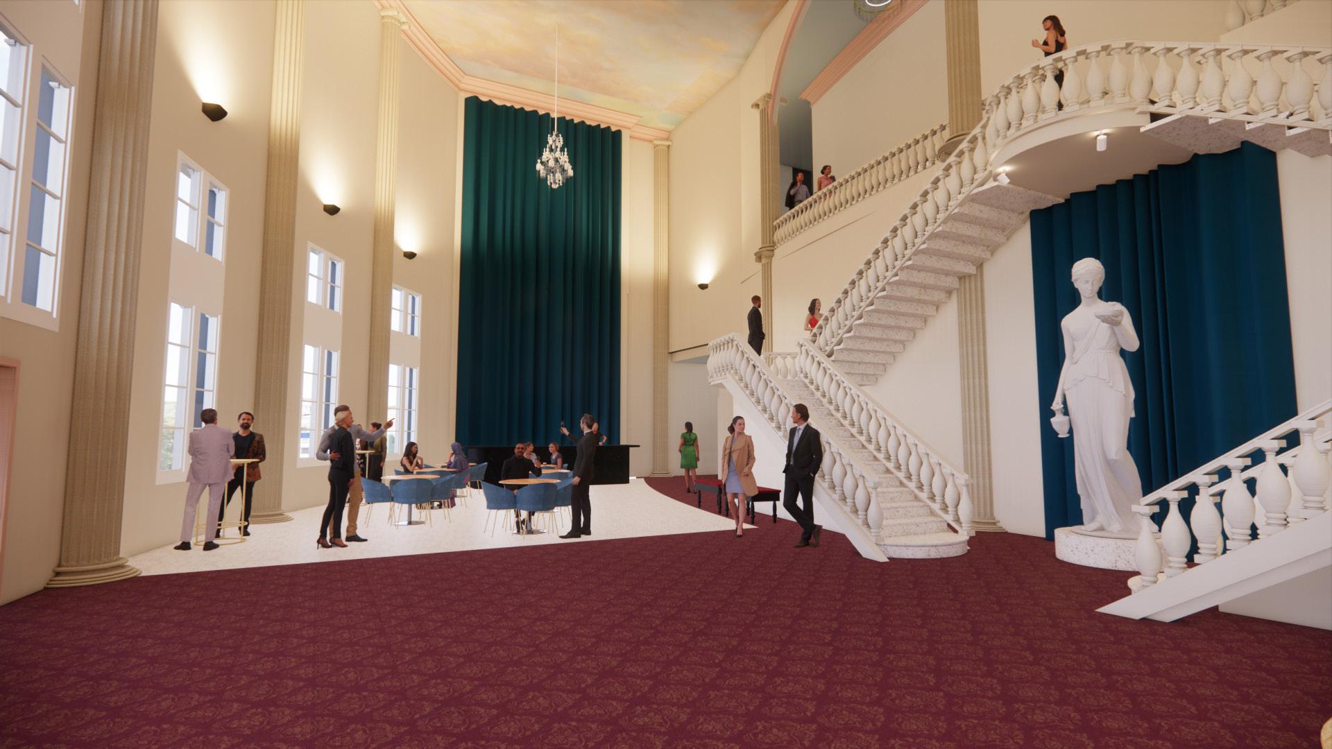 Scan the QR Code for a virtual reality view of the Alithini Lounge, Box Office, & grand staircase! Lobby & Lounge