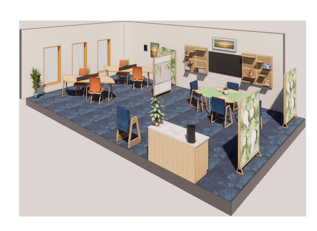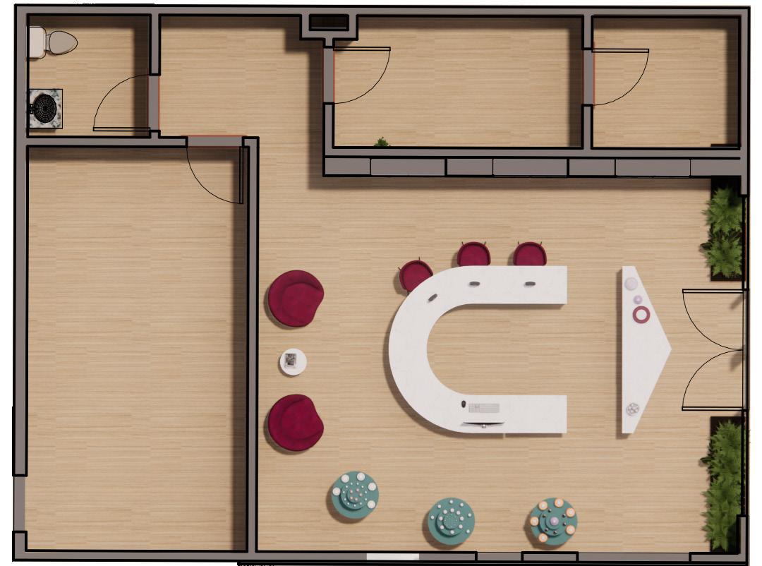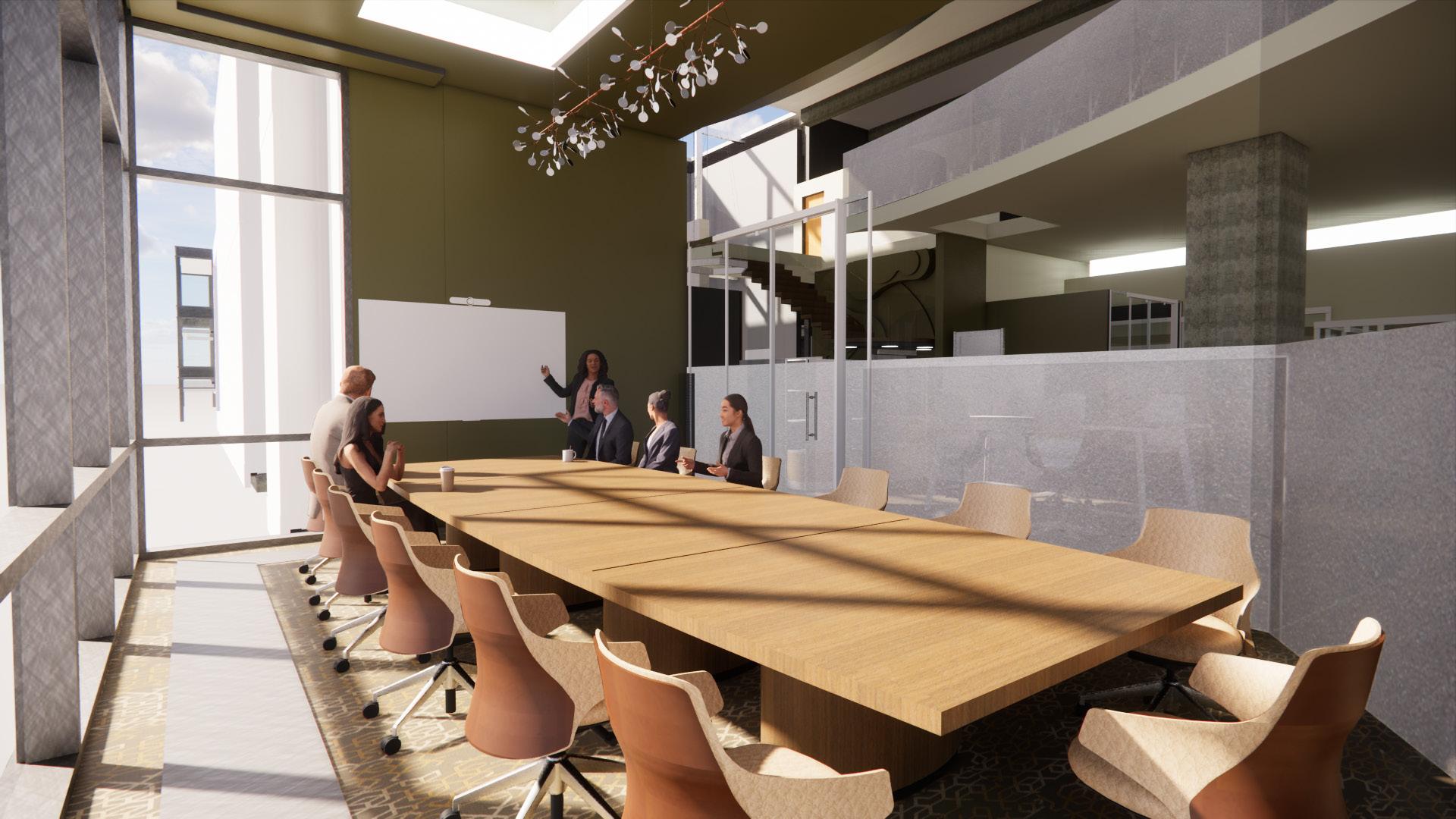 NEXT is a collaborative single profit company that prioritizes sustainability, cohesion, balance, and inclusion. This 11,000 square-foot space is designed using inspiration from local elements, including the Bluebonnet flower. The implementation of HumanCentric design is shown through use of Third Space, biophilic design, and inclusive design, which prioritizes employee wellness and productivity. Organic shapes, natural colors, and fluid mobility create an encompassing work environment. 1.