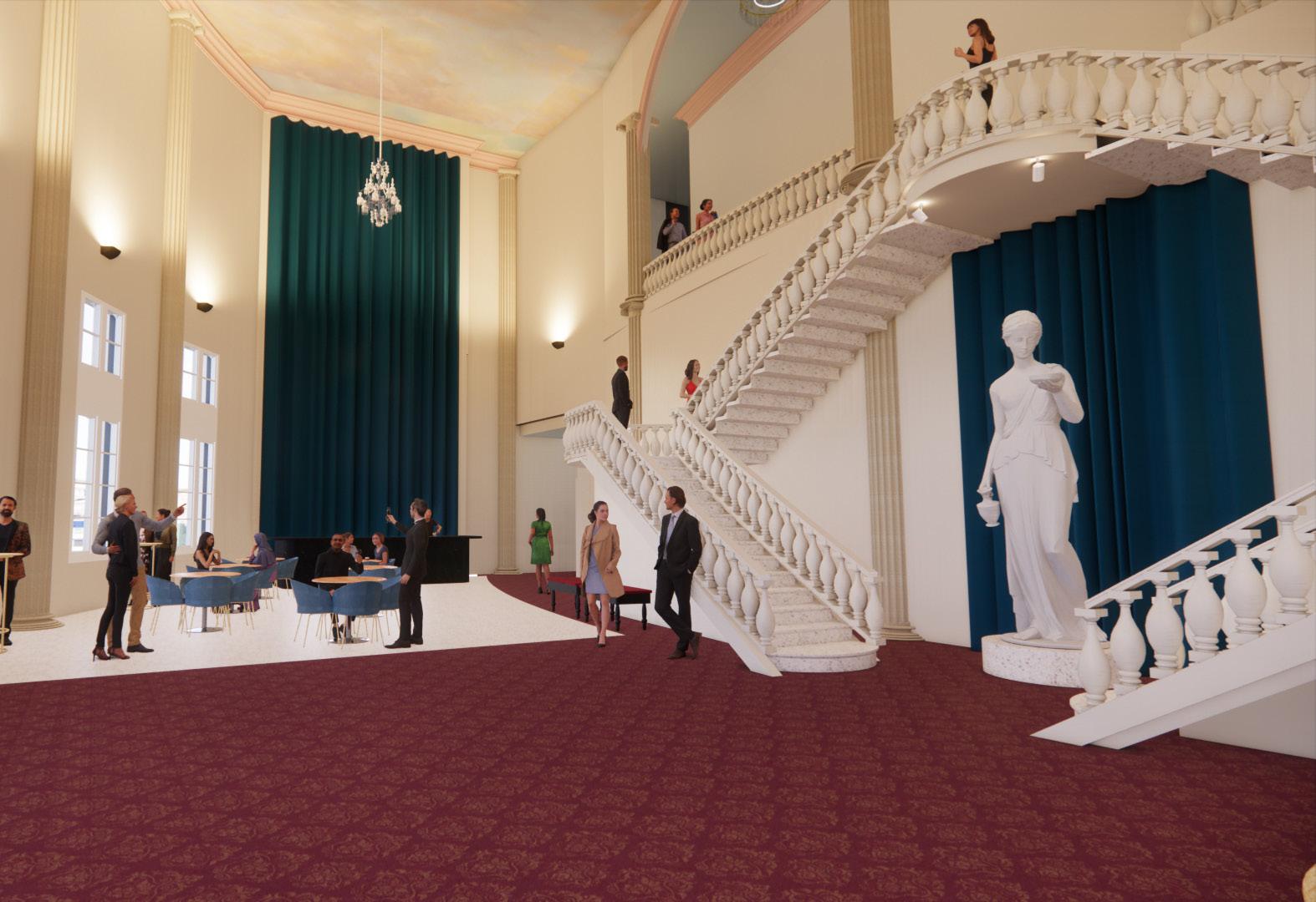 the QR Code for a virtual reality view of the Alithini Lounge, Box Office, & grand staircase!