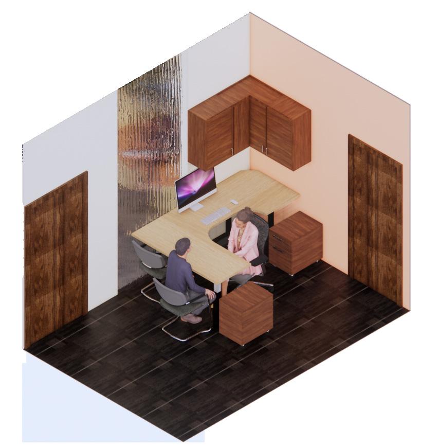 Embark on a design journey in our 600-square-foot collaboration room. This multifunctional space blends a small client-centric conference room and flexible individual workspaces in the captivating spirit of Haworth. With chic wall storage showcasing client products, this room harmonizes artistic expression with ergonomic elegance, inviting you into a narrative where function, flair, and Haworth style effortlessly intertwine.