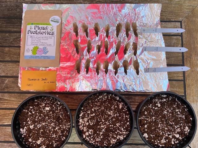 目的 微生物製剤あるいは微生物発酵食品が プルメリアに良い効果をもたらすかついて 科学的に検証すること目的とする 新品の植木鉢 土を揃える タネは同じ鞘から 場所を近くに置き ローテーションする 成長を数値で測定