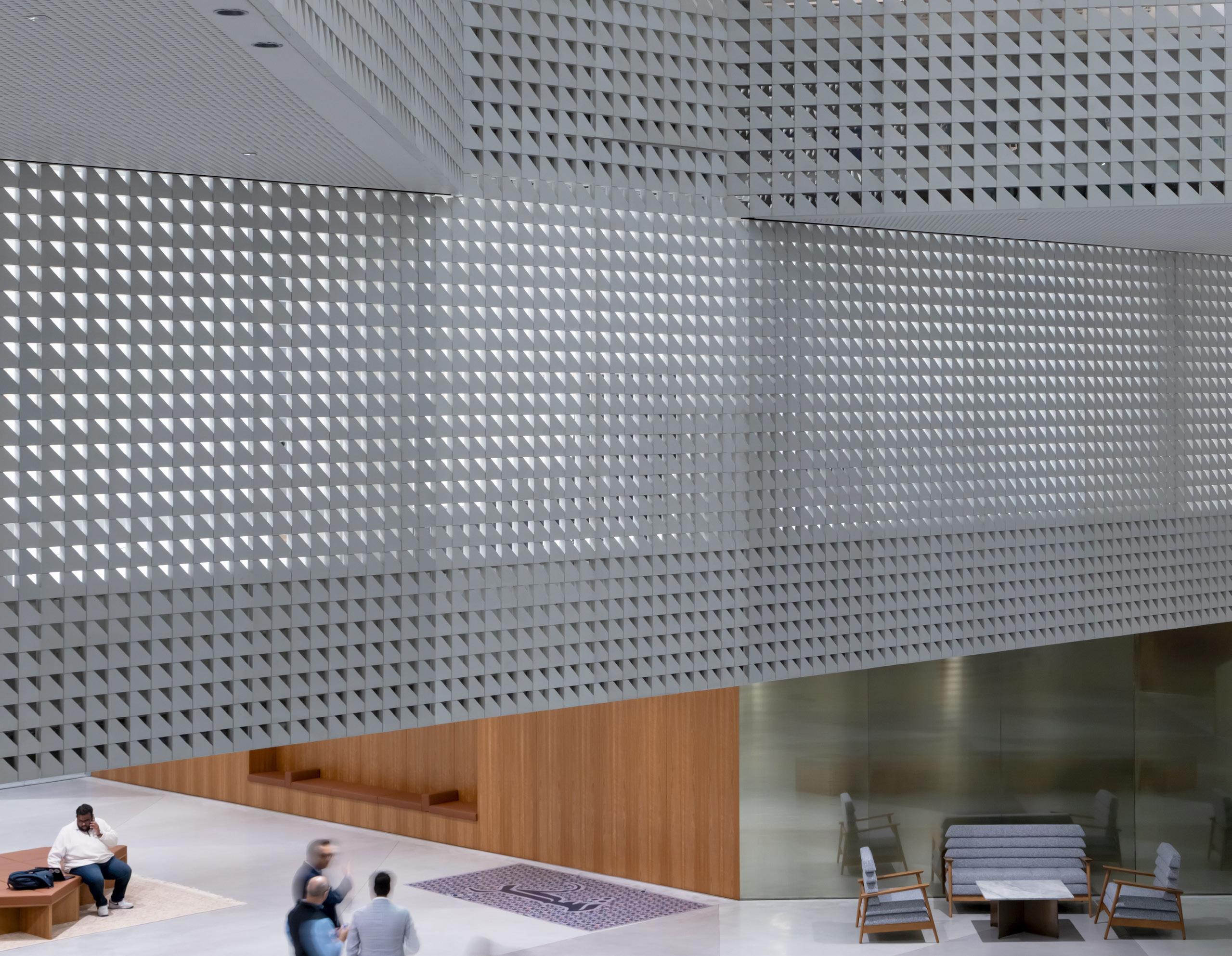 close attention to design intent and acoustic performance. To enhance the space further, automated shading systems were installed to improve daylight control and energy efficiency while blending seamlessly into the overall design. This portion of the work was led by John Kruithoff, supporting both Novawall and window treatment installations.