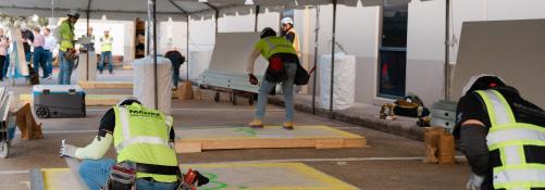 This year, judging included outside industry professionals. Guest judges were Bruce Worcester of DPR Construction, and William Lastinger of Benchmark Construction. Jarrell Jackson of Associated Builders and Contractors’ national office also attended. Competitors were evaluated on build accuracy, ability to read blueprints and follow instructions, safety practices, and a 100-question written exam.